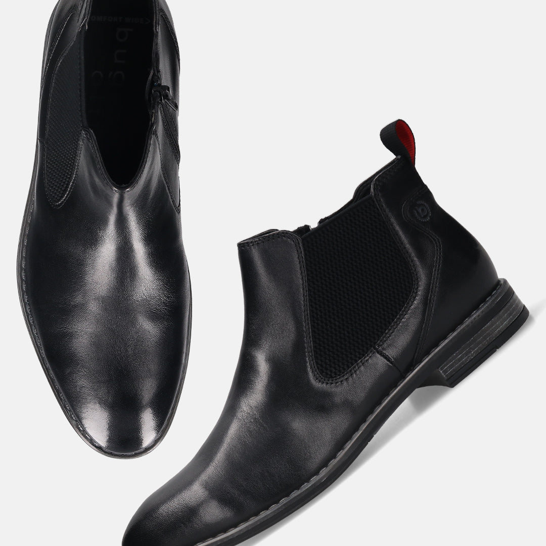 A black Men's bugatti Slip-On Sneakers featuring a round plain toe, zero heels heel. Made from textile with a durable eva outsole, this slip-on design offers both style and comfort.