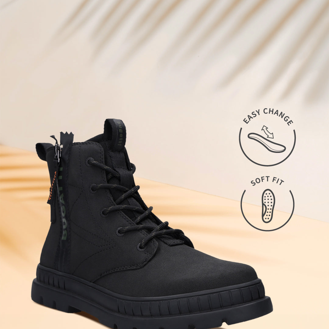 A blue Men's bugatti  Slip-On Sneakers featuring a round toe plain toe, zero heels heel. Made from textile with a durable tpr outsole, this slip-on design offers both style and comfort.