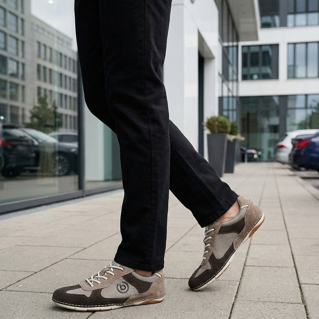 A beige Men's bugatti Sneakers featuring a round plain toe, zero heels heel. Made from textile with a durable eva outsole, this laces design offers both style and comfort.