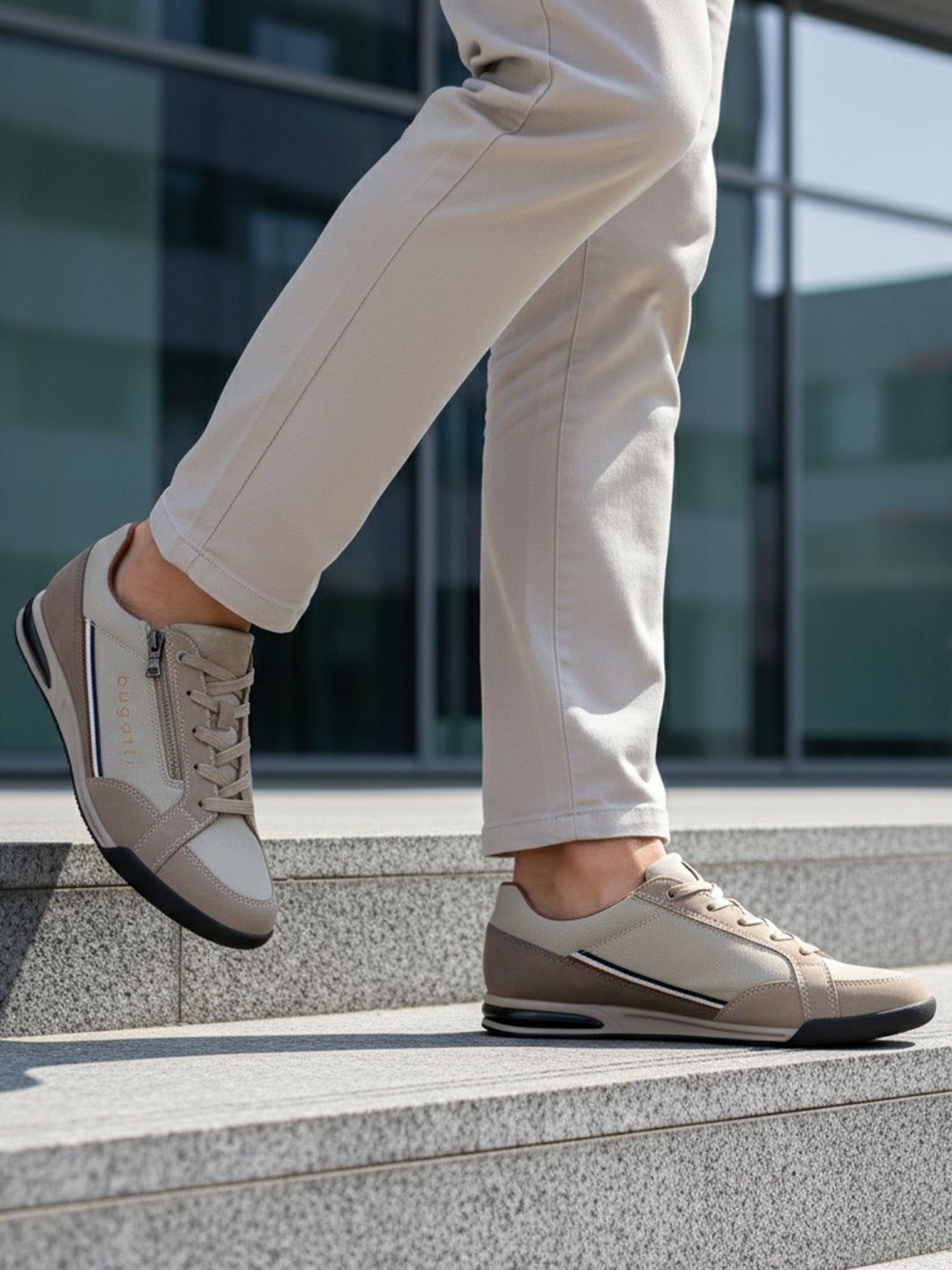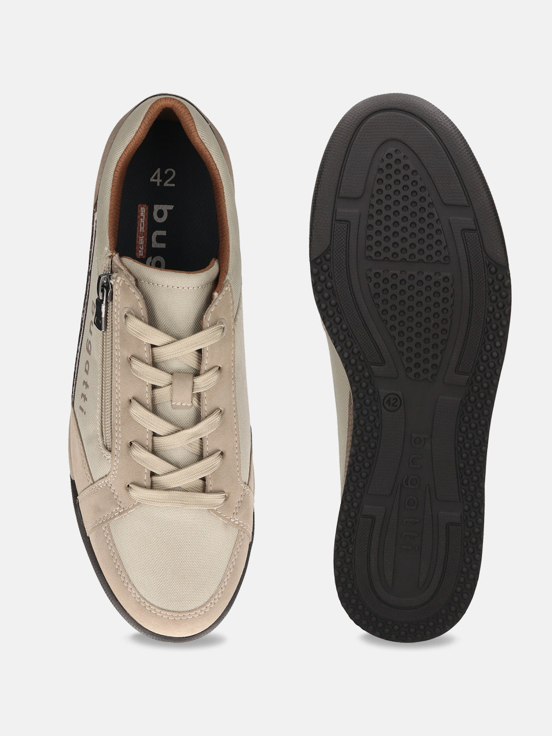 Expertly crafted to bridge the gap between work and play. bugatti Trevor beige sneakers. For Him. Made from synthetic uppers, the pair comes with TPR outsoles for superior grip and traction.