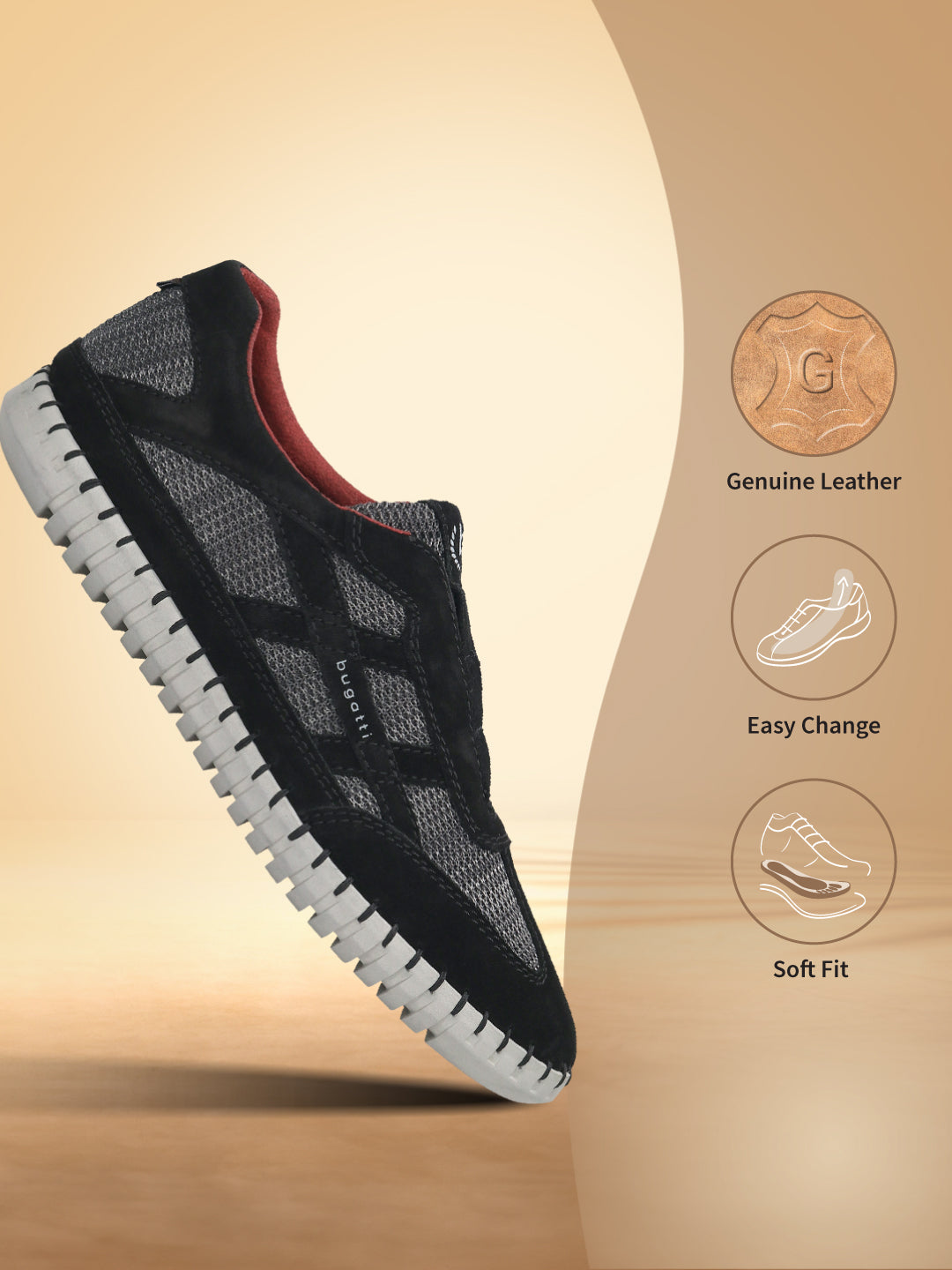 - Product Name : Bugatti Black & Dark Grey Premium Leather Sneaker