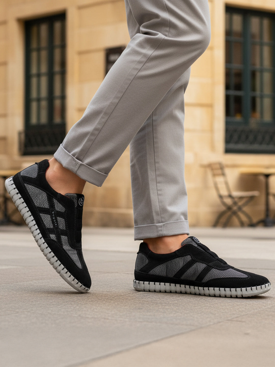 The way to effortless style, comfort, and finesse all at once. bugatti Baloo black and dark grey sneakers. Easy Change & Soft Fit insoles, jagged EVA outsoles, and more. The latest from Europe.