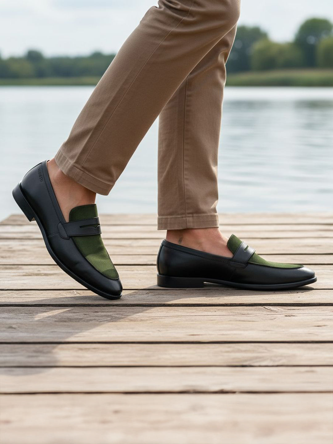 - Product Name : Bugatti Black & Green Premium Leather Slip-On
