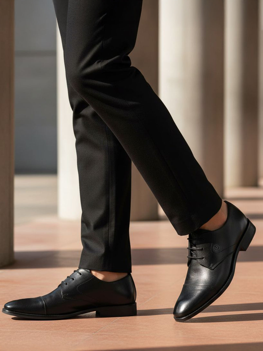- Product Name : Bugatti Black Premium Leather Derby Formal Shoes