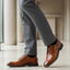 bugatti Mero cognac derbies. Crafted with hand-finished Care Impregnated leather, these formal round-toe shoes feature TPR outsoles and stacked heels for a commanding presence.