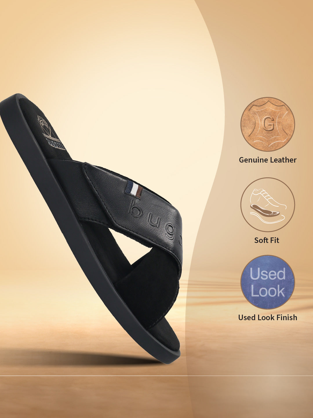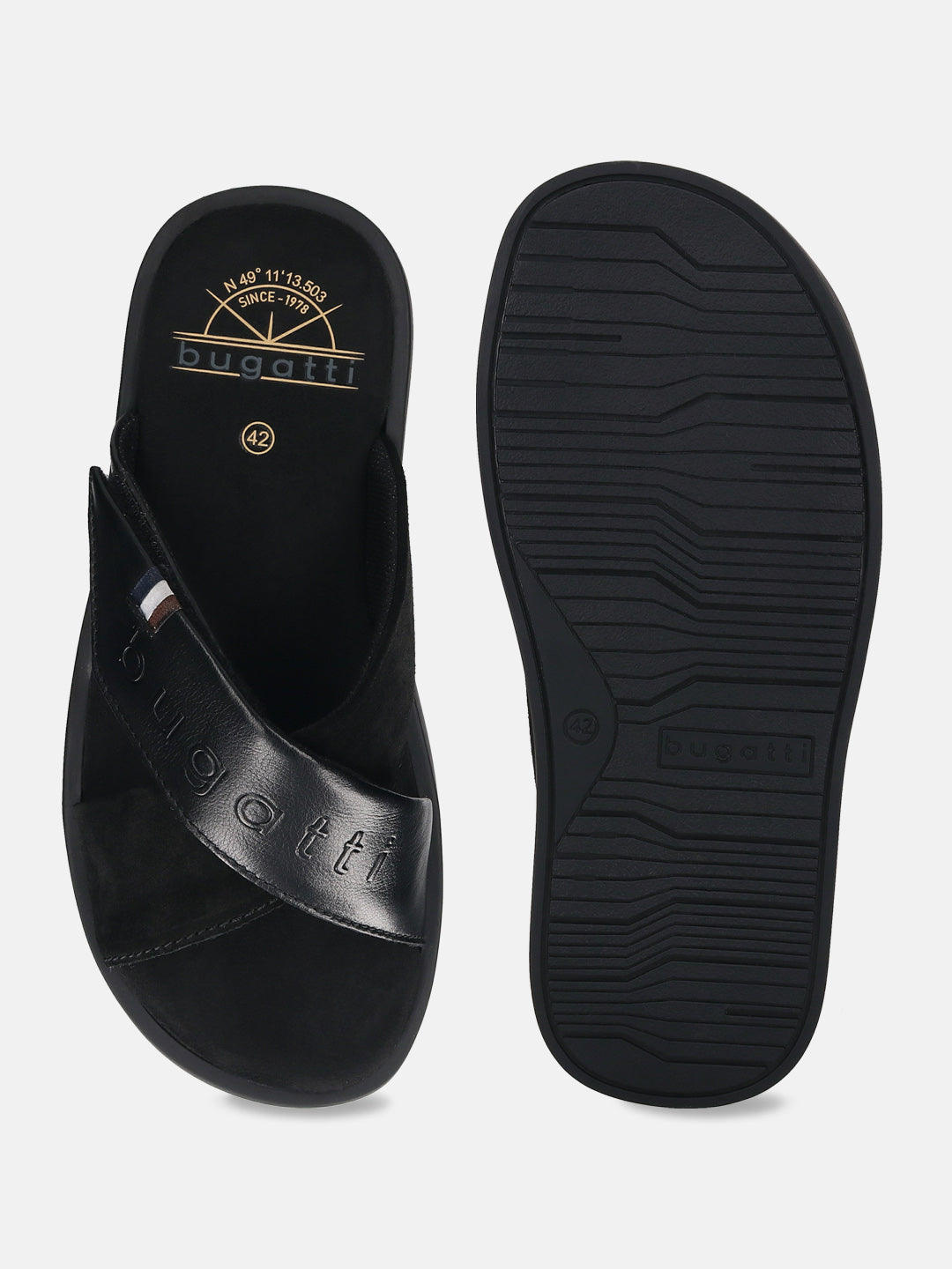 - Product Name : Bugatti Black Premium Leather Sandal