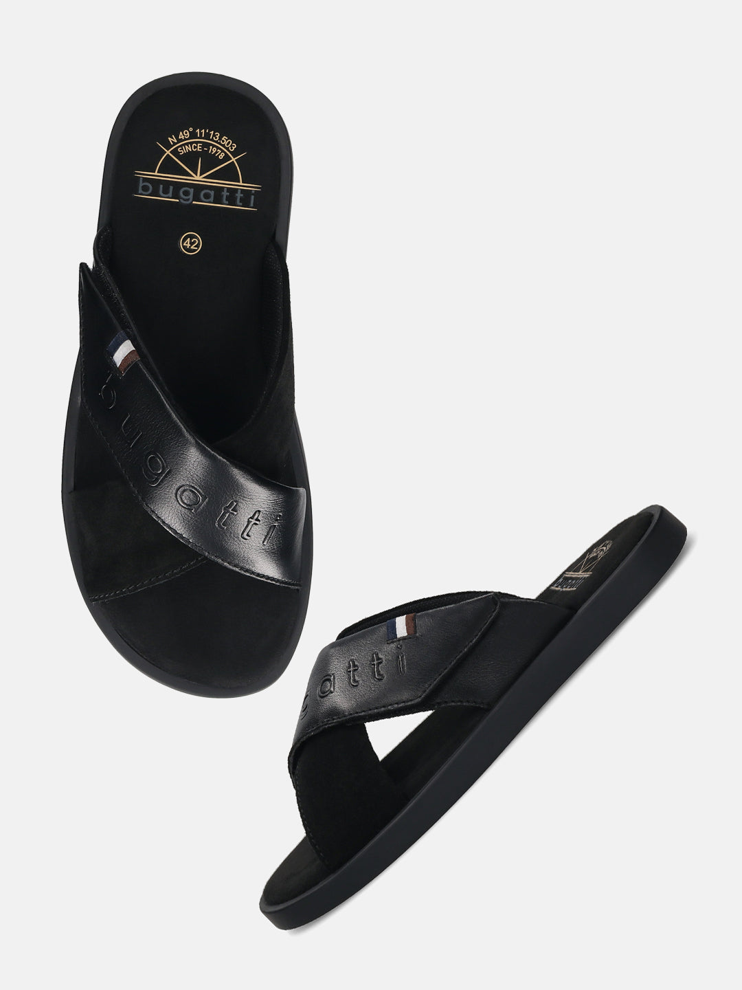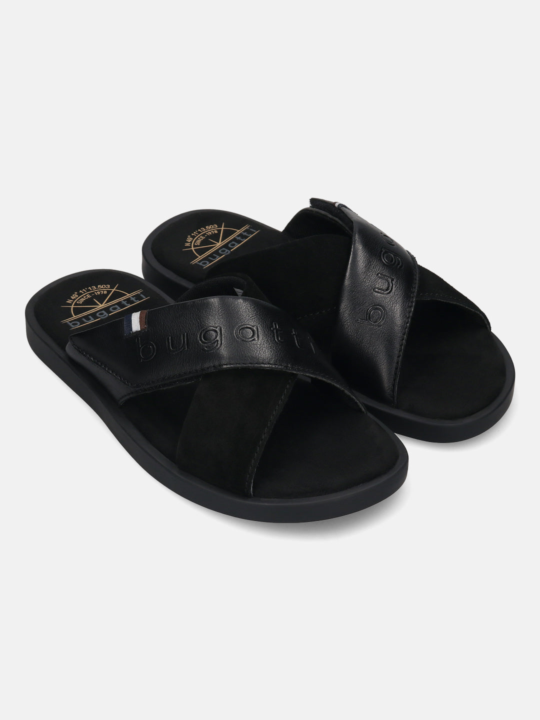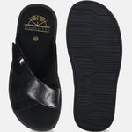 bugatti Derek black Premium Leather Comfort Cross Strap Sandals