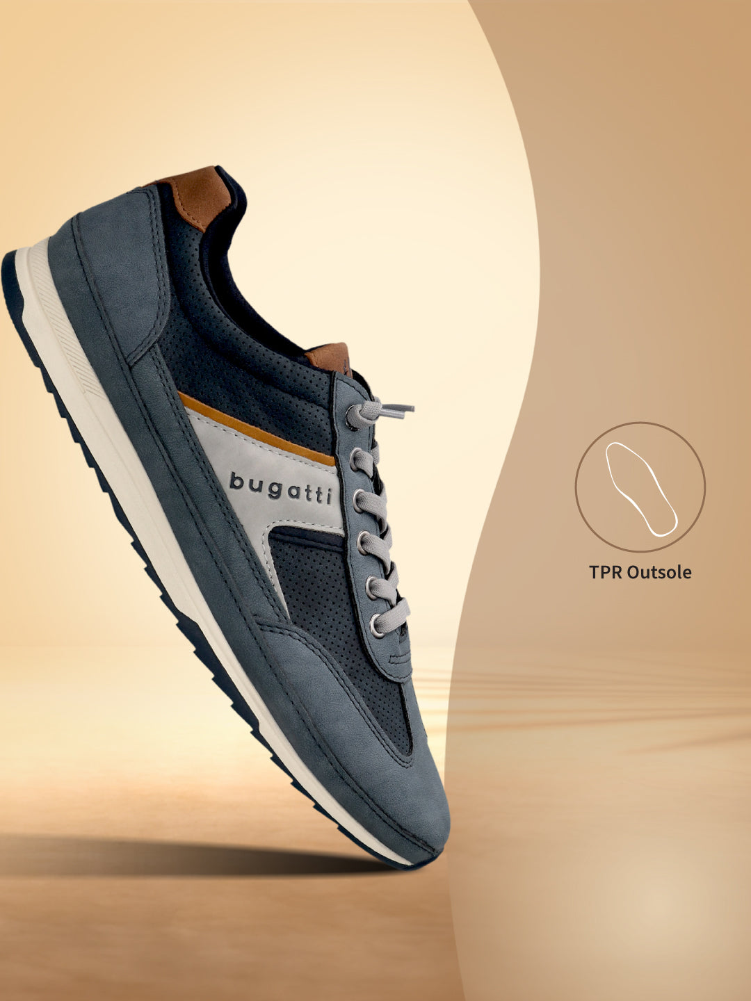 As functional as they are fashionable. bugatti Riptide dark blue sneakers. Its synthetic uppers sit atop contra-coloured TPR outsoles for a distinct look of style. It's the latest from Europe.