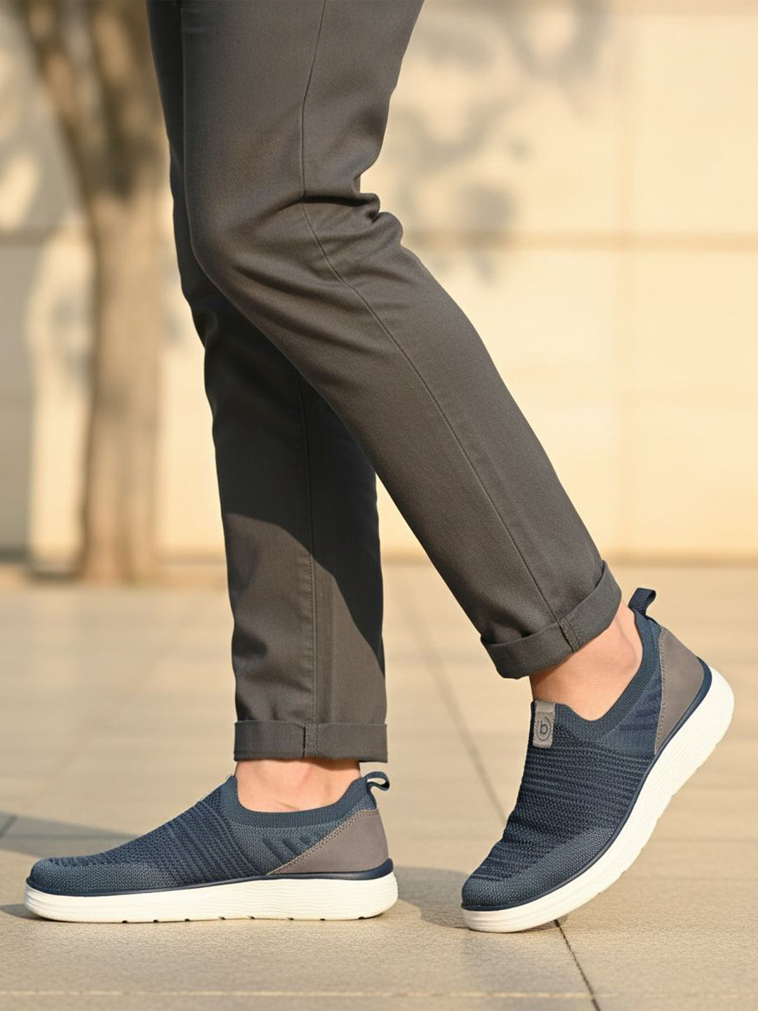 A touch of sophistication to your favourite outfit. bugatti Astra blue and grey slip-on shoes. These fabulous shoes are crafted from textile uppers. Genial Light and Soft Fit for supreme comfort.