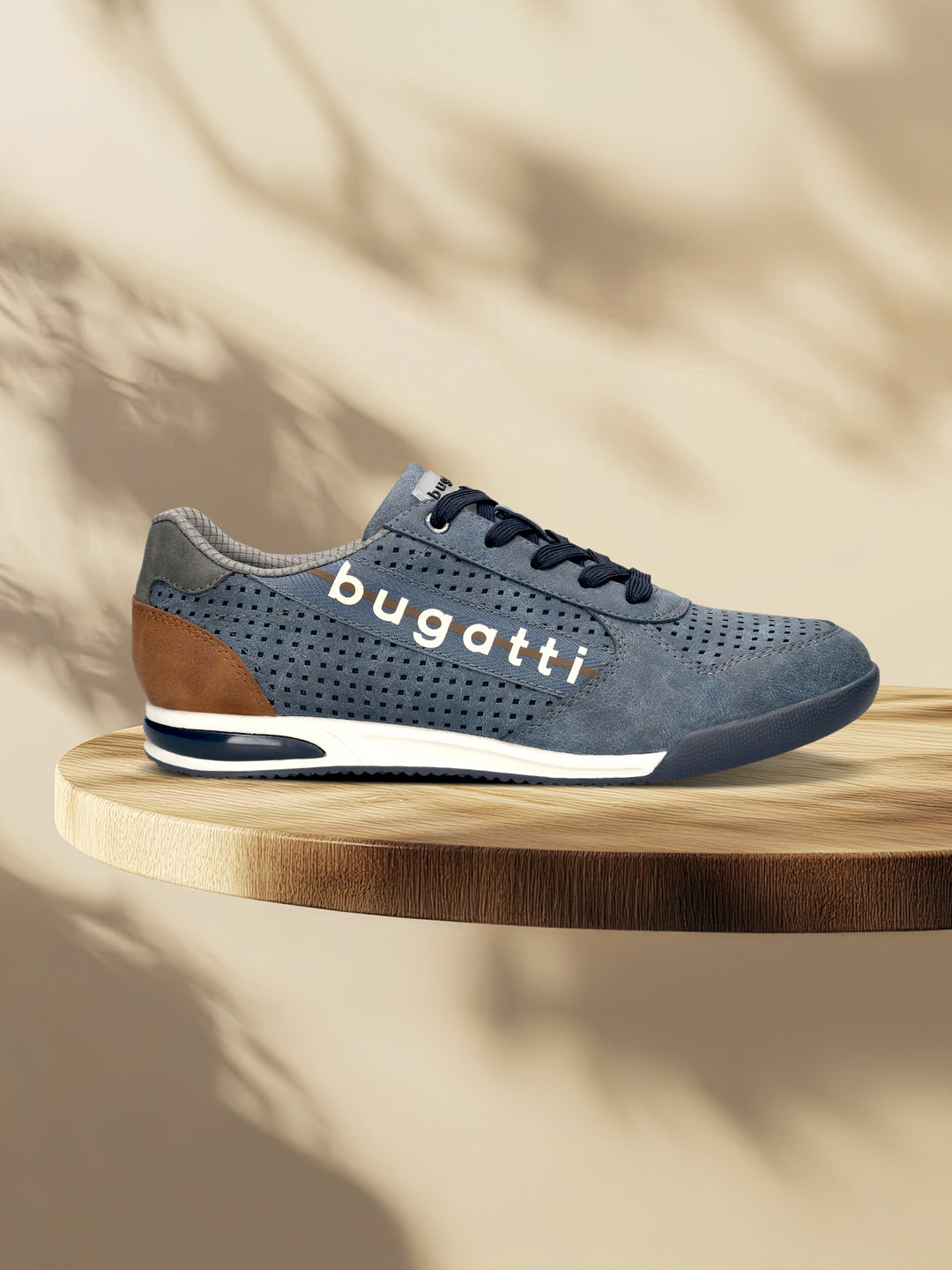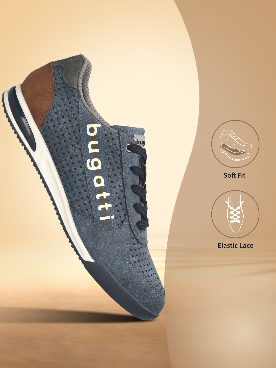 Character-defining style comes naturally with bugatti Trevor blue sneakers. Features Soft Fit insoles and TPR outsoles for added comfort. bugatti branding on the sides for a look of sophistication.