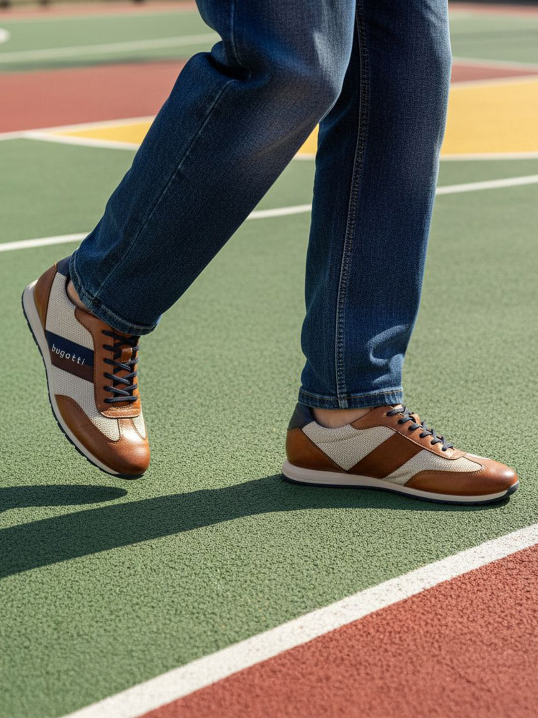 - Product Name : Bugatti Cognac & Beige Premium Leather Sneaker