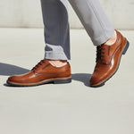Innately classy and suave. bugatti Merlo cognac derbies. With hand-finished Care Impregnated leather, Comfort Wide feature, and TPR outsoles, these shoes are expertly crafted and built to impress.