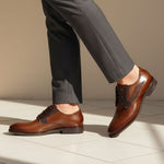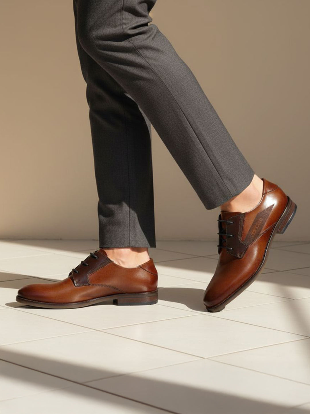 Timeless appeal meets fine craftsmanship in the bugatti Sula cognac derbies. Hand-finished Care Impregnated leather. Genial Insole & TPR outsole for walking comfort like no other.