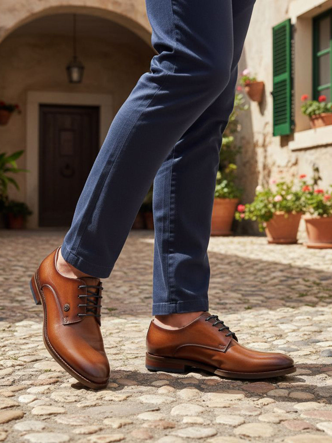 - Product Name : Bugatti Cognac Premium Leather Derby Formal Shoes