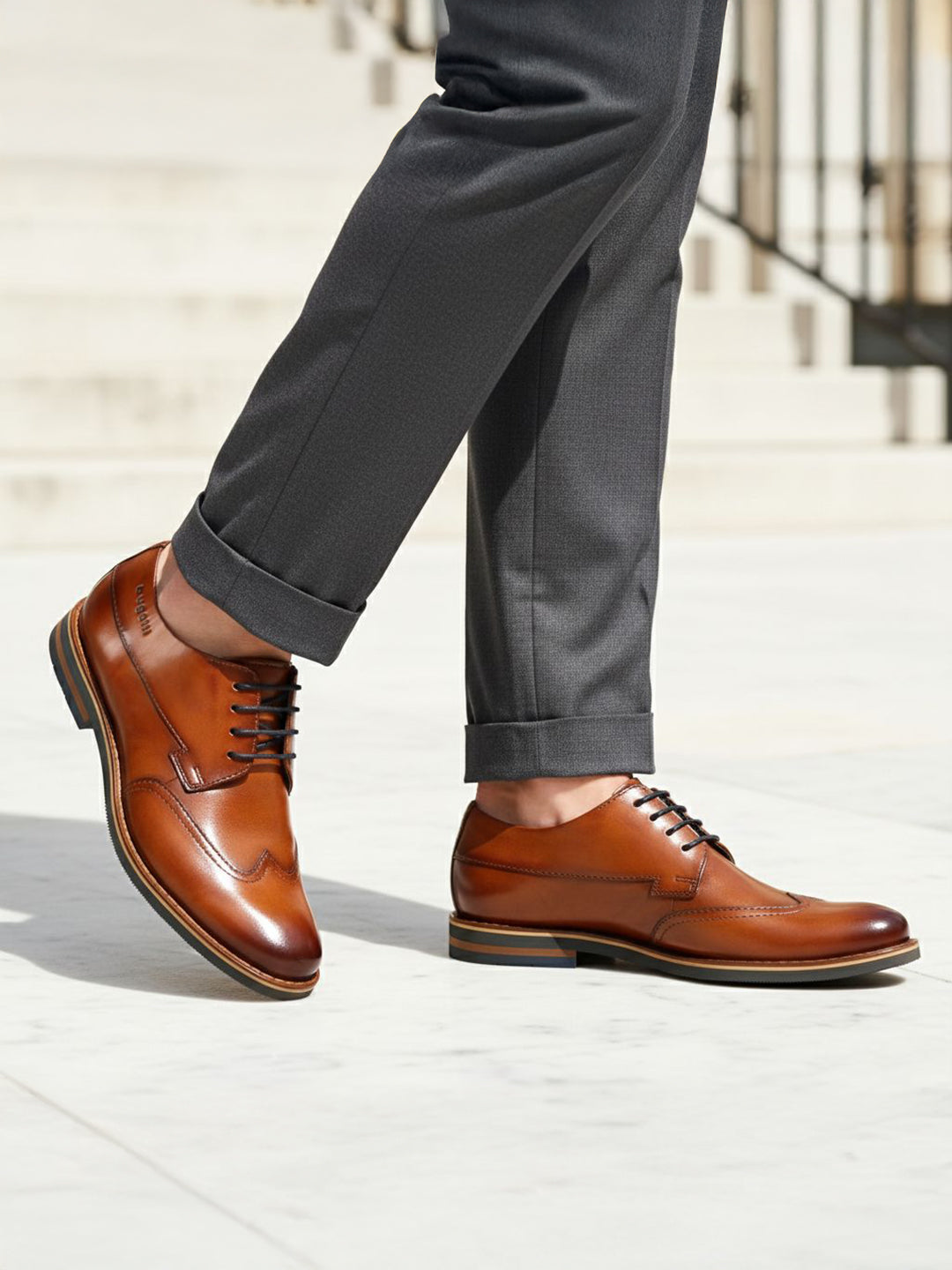 A classic from the streets of Europe. bugatti Laci Light cognac derbies. The elegant leather uppers feature hand-finished leather. Genial Insole and EVA outsole for comfort and traction.