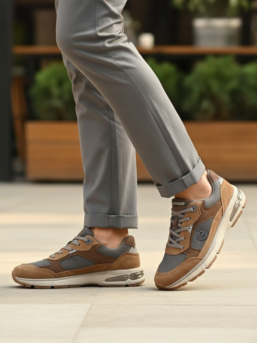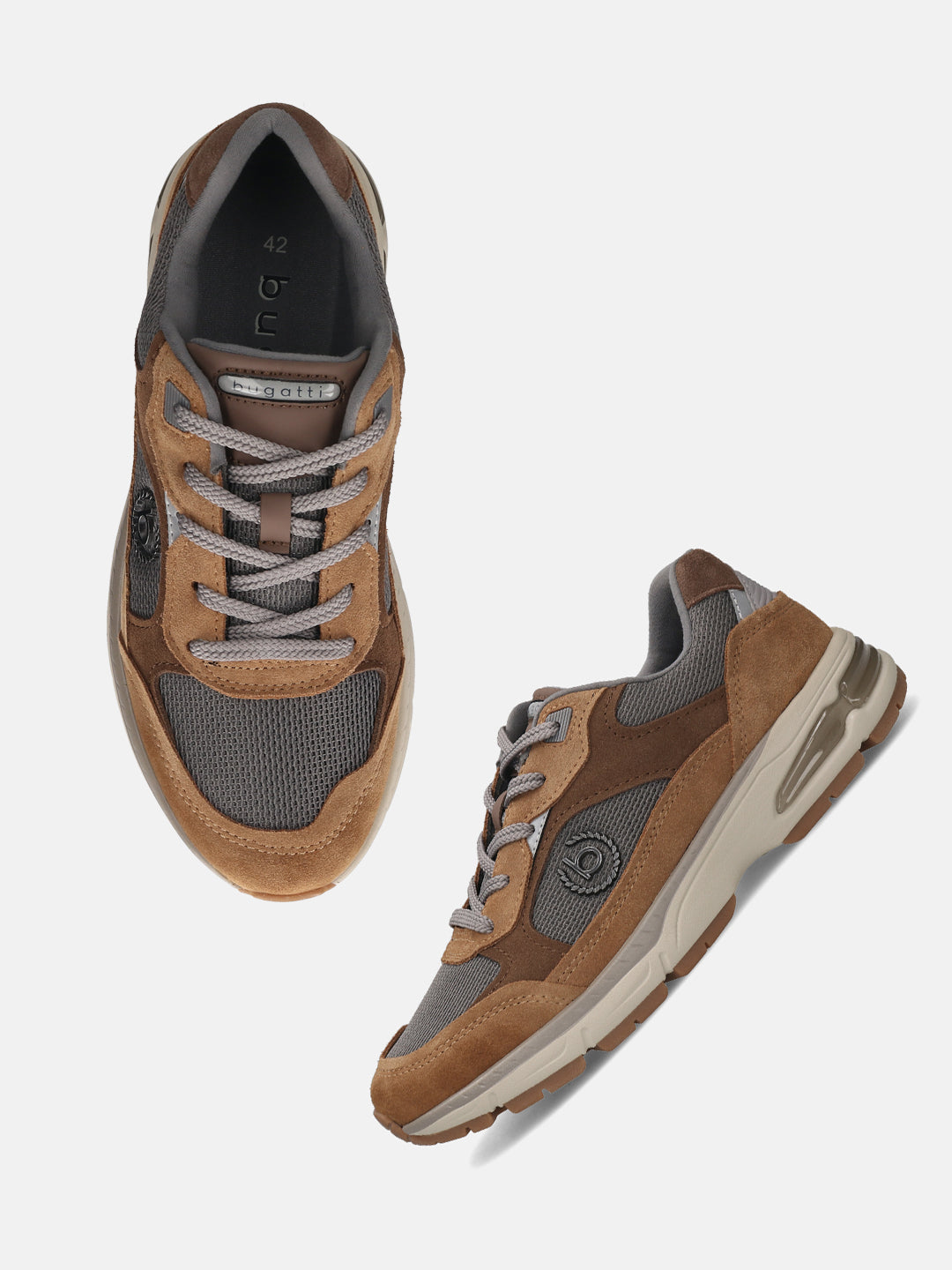 Tailored for an understated fashion-forward aesthetic, these bugatti Parry cognac and grey sneakers balance rich tones against a sleek finish. Featuring leather uppers and TPR soles.