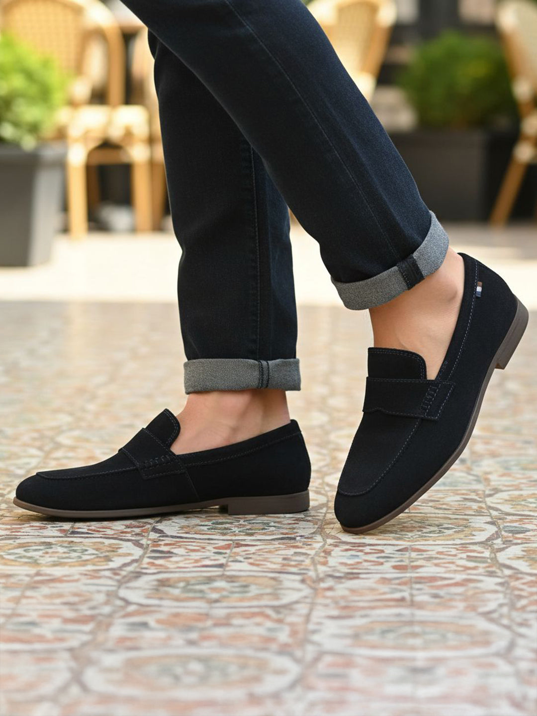 Not everything simple needs to be mundane. bugatti Tryst. A sleek penny loafer crafted in premium dark blue leather with a Used Look finish. Soft Fit insoles for an unparalleled walking experience.