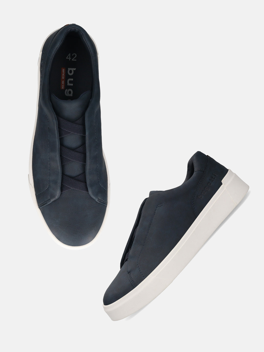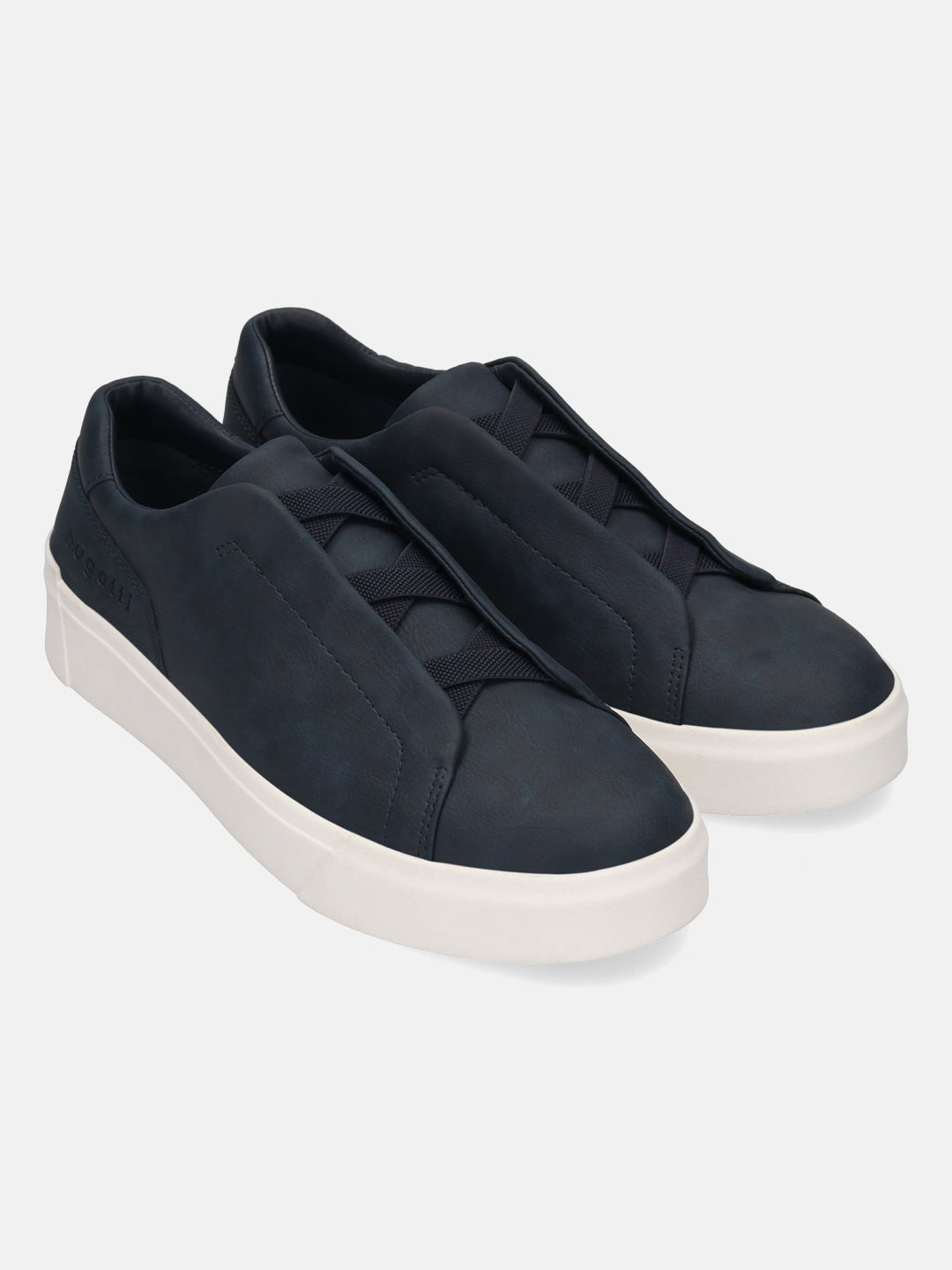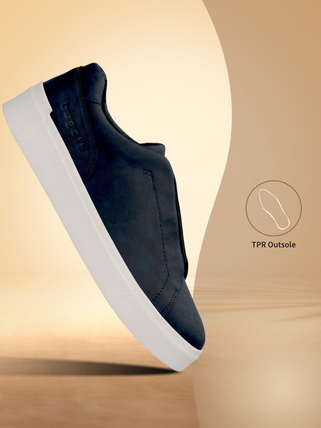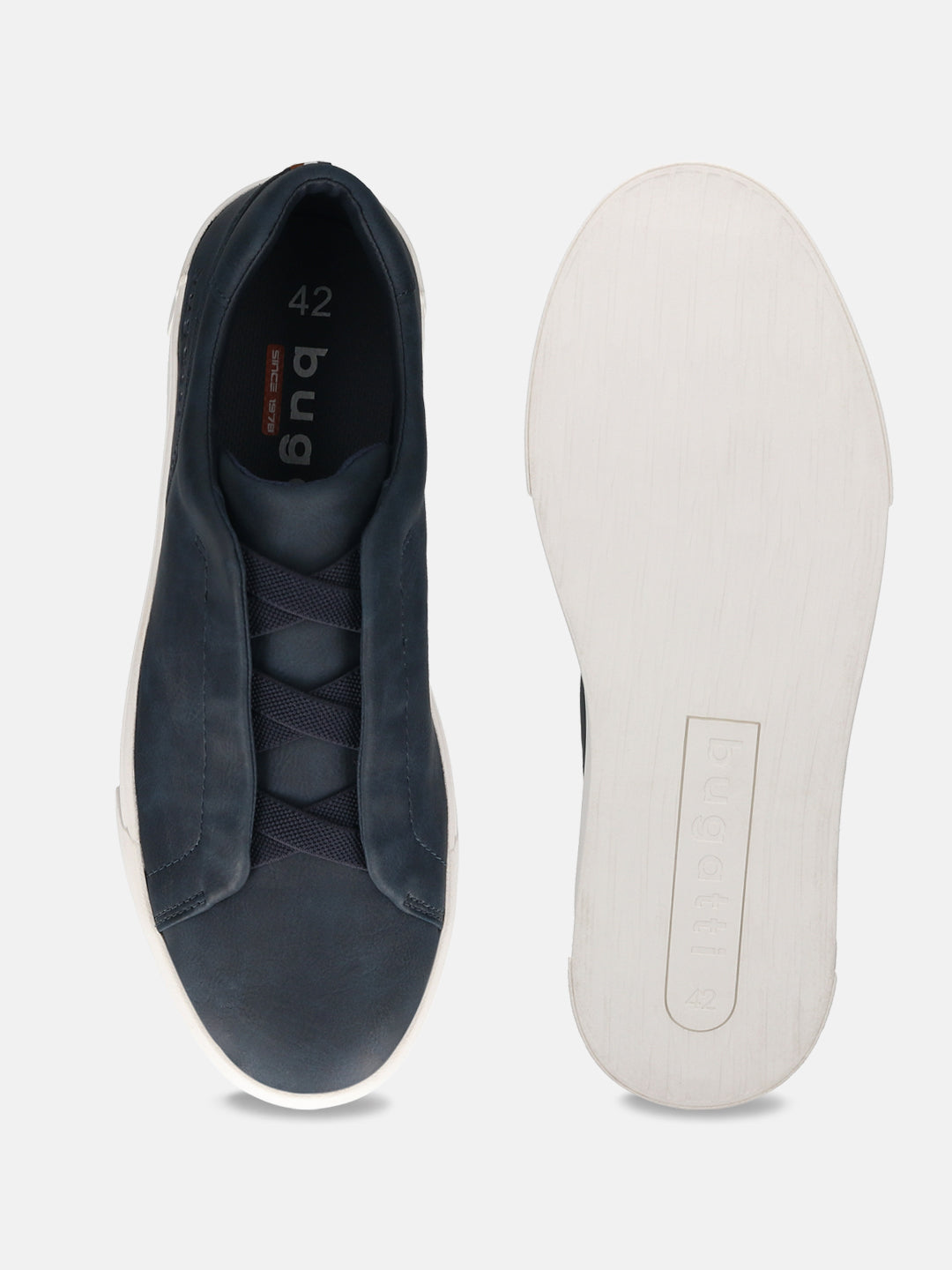 Crafted for the discerning man who values both style and comfort. bugatti Gunter dark blue slip-ons. Made with synthetic uppers. Round-toe design and TPR outsoles for superior comfort and traction.
