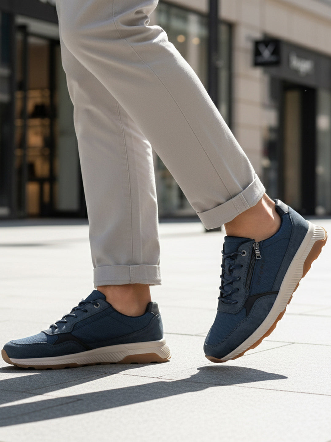 For the city rover who never breaks pace, these bugatti Jerit dark blue sneakers deliver all-day wearability. Featuring TPR outsoles with anti-slip grip for steady, purposeful strides.