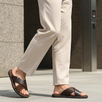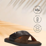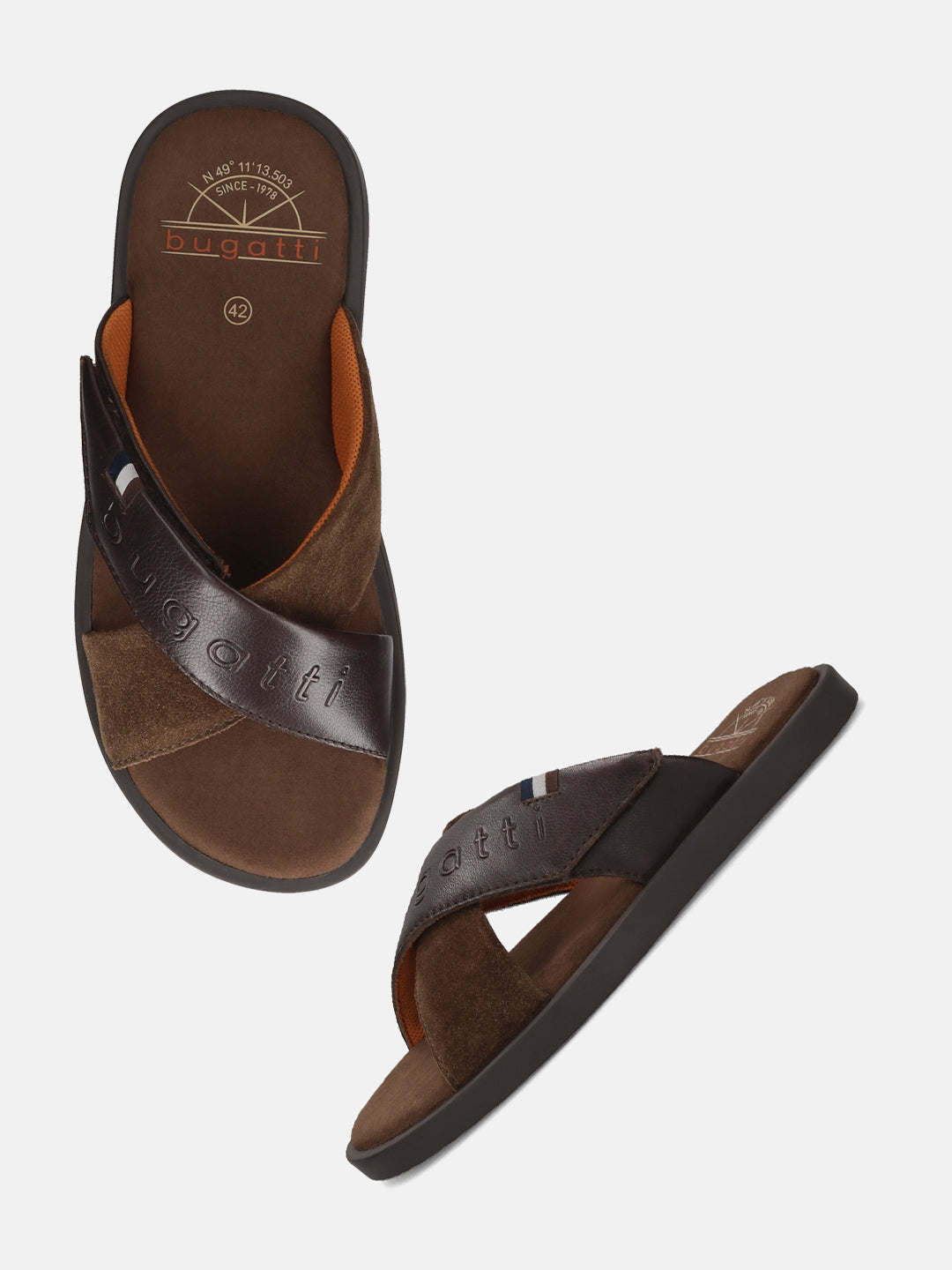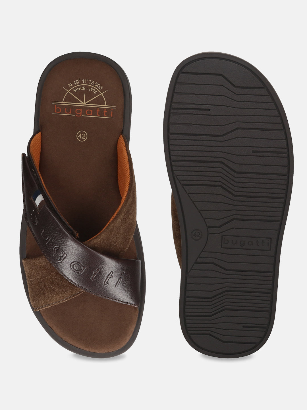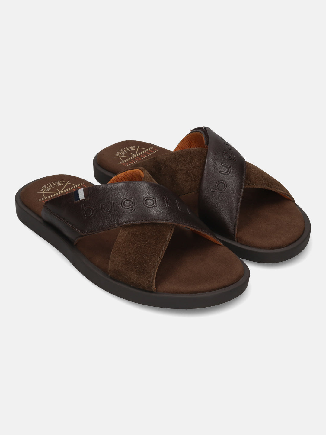 bugatti Derek dark brown Premium Leather Comfort Cross Strap Sandals
