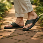 bugatti Cobie dark green Premium Leather Comfort Thong Sandals