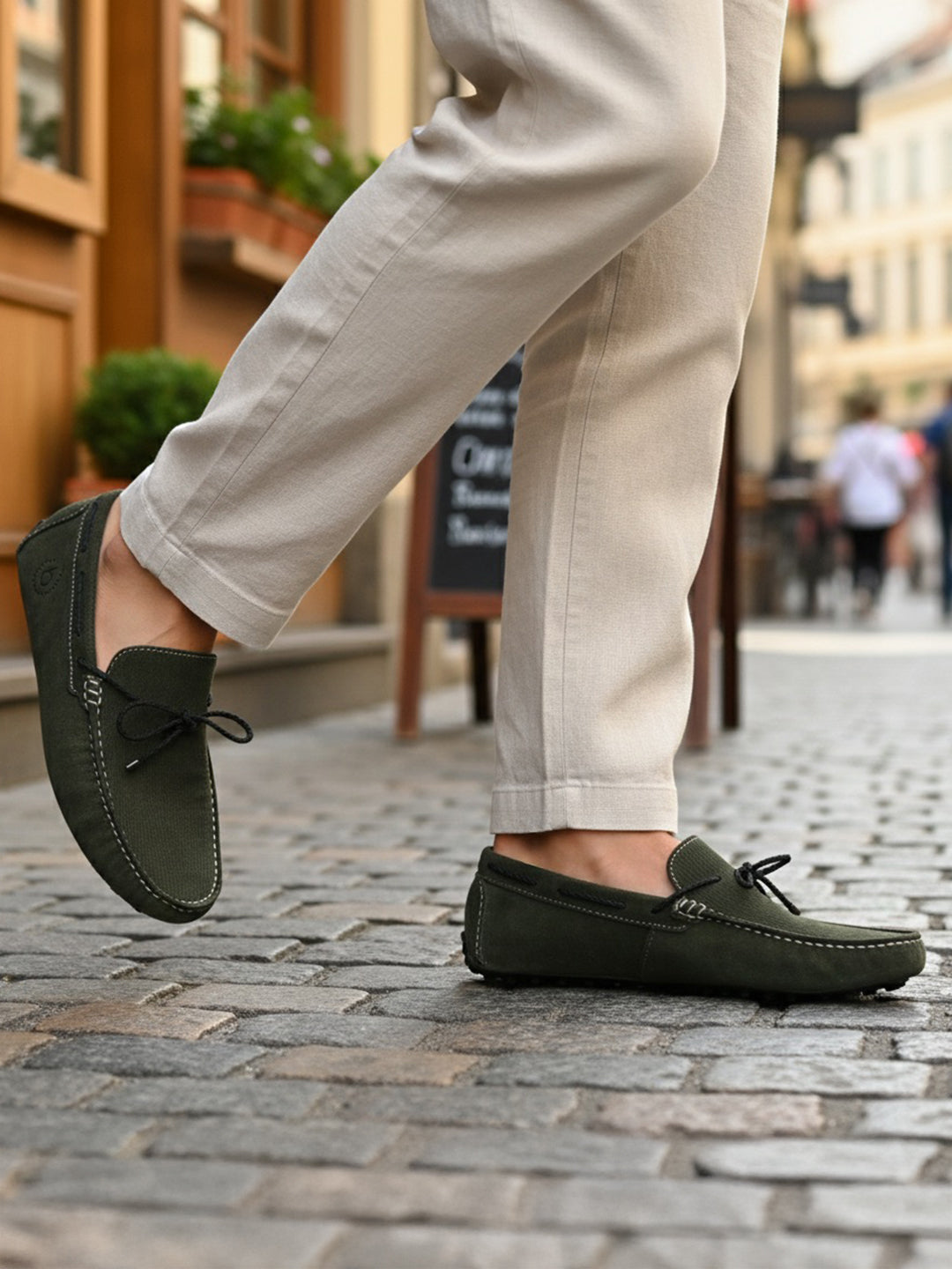 Designed for the man with an iconic sense of style. bugatti Manfield dark green drivers. Made from luxurious suede leather this pair effortlessly exudes an air of casual sophistication in every step.