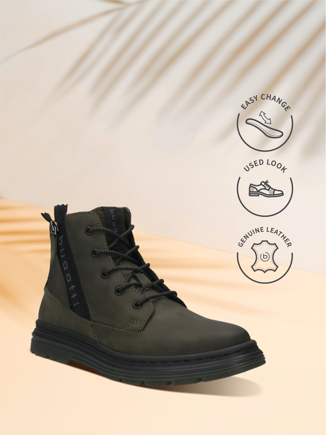 A statement will be made, and it will be BOLD. bugatti Drake dark green casual boots. Made from premium leather with a charming Used Look finish. Easy Change insoles for added convenience.