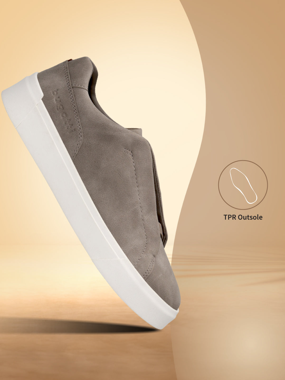 Crafted for the discerning man who values both style and comfort. bugatti Gunter grey slip-ons. Made with synthetic uppers. Round-toe design and TPR outsoles for superior comfort and traction.