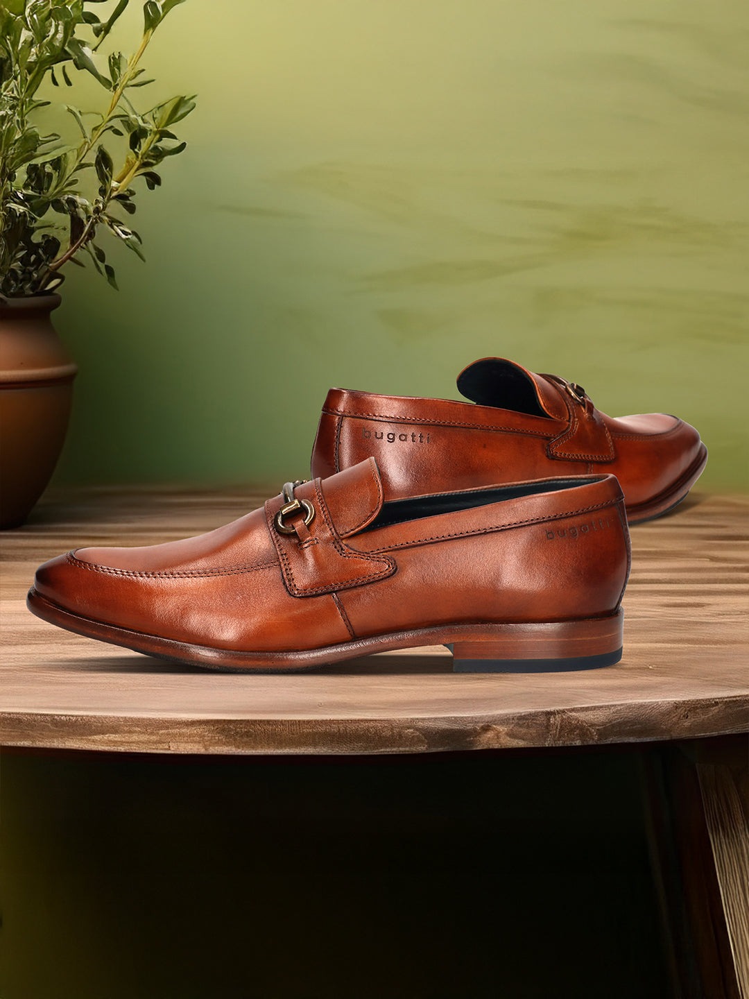 - Product Name : bugatti Cognac Premium Leather Slip-ons Formal