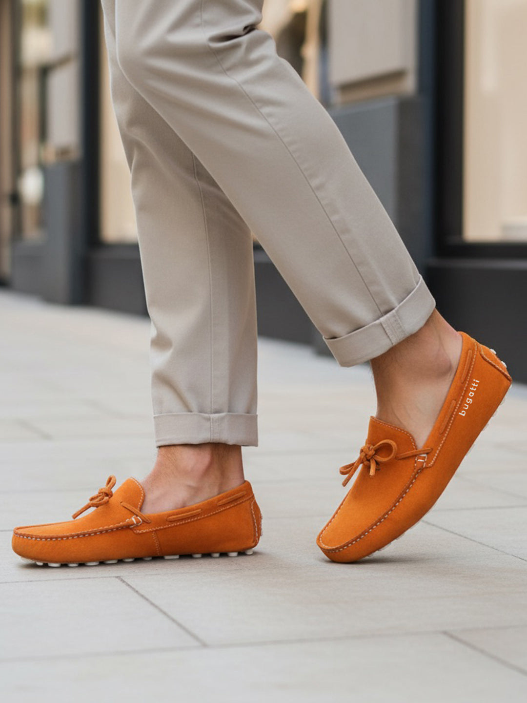 Try as you may, but there's just no blending in with the bugatti Manfield orange drivers. Its vibrant leather uppers with charming contra-coloured stitching detail add to their modern appeal.