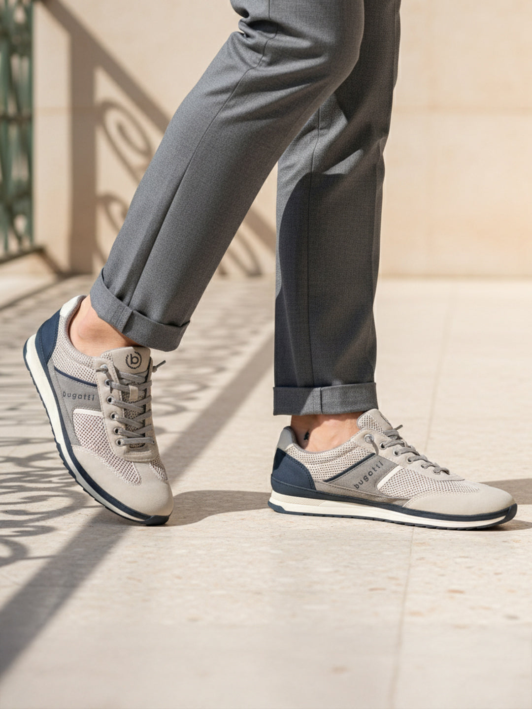 bugatti Riptide sand and grey sneakers. For Him. Every step in these sneakers radiates confidence and flair. It's the latest from the streets of Europe.