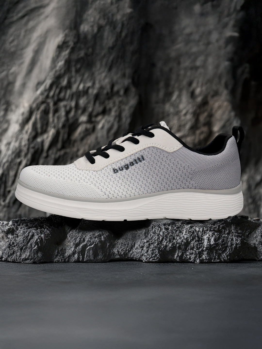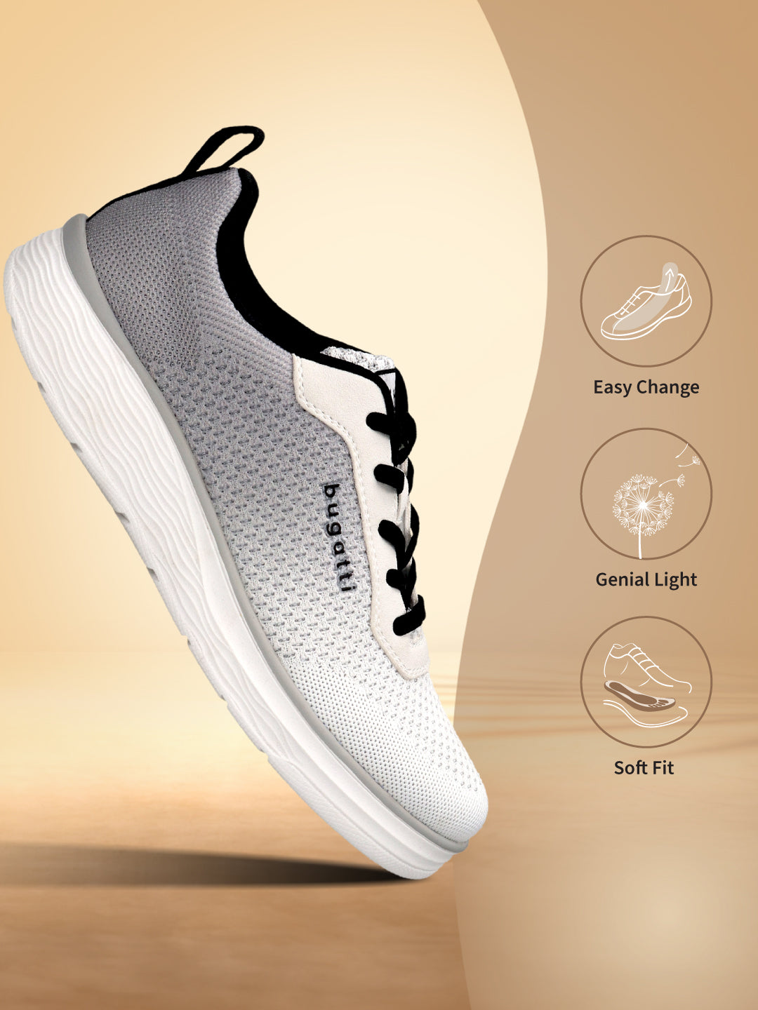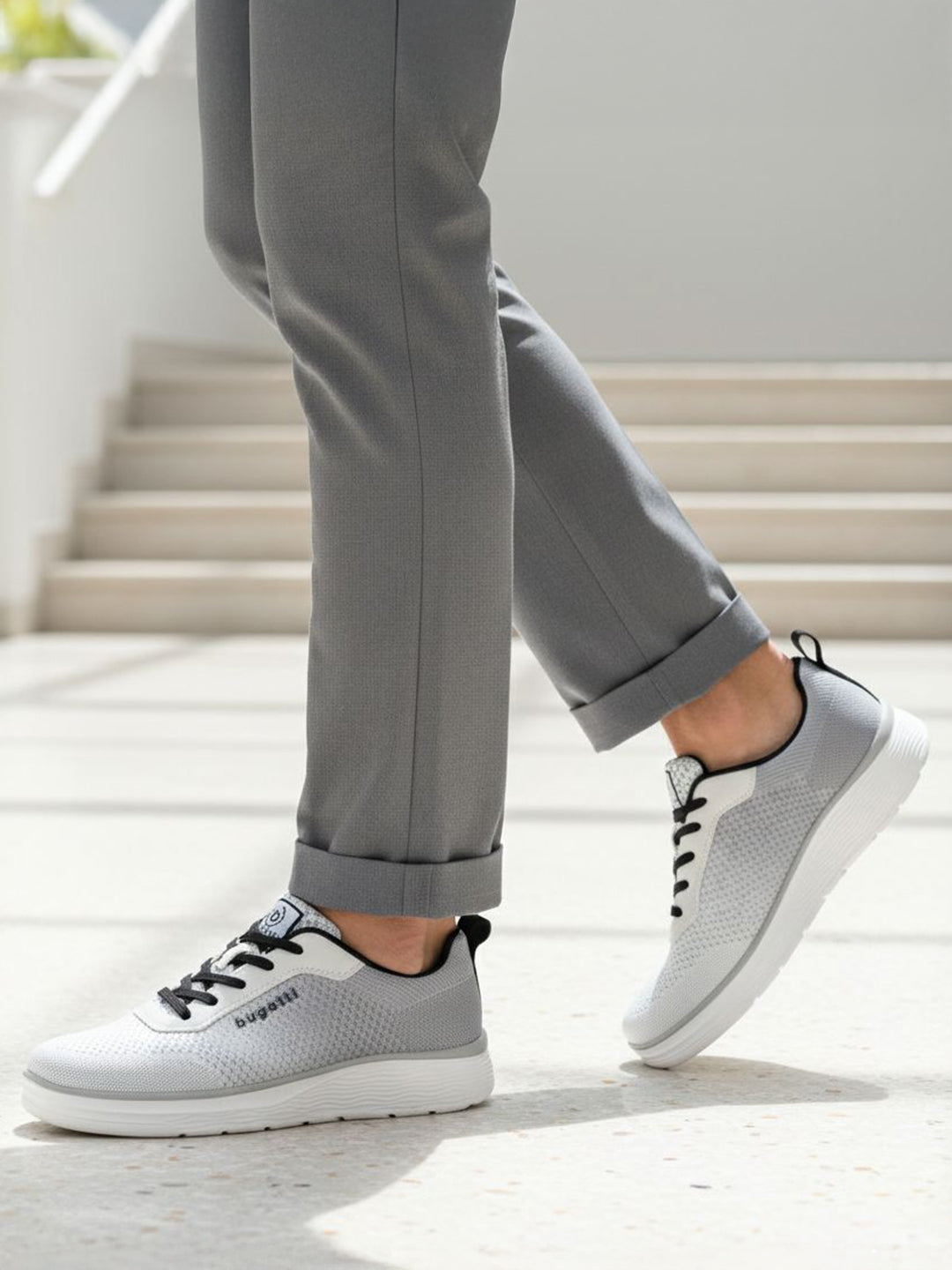 Utterly urban. Undeniably classic. bugatti Astra white and light grey sneakers. A versatile style for work and weekends featuring Easy Change, Genial Light & Soft Fit insoles for unparalleled comfort.