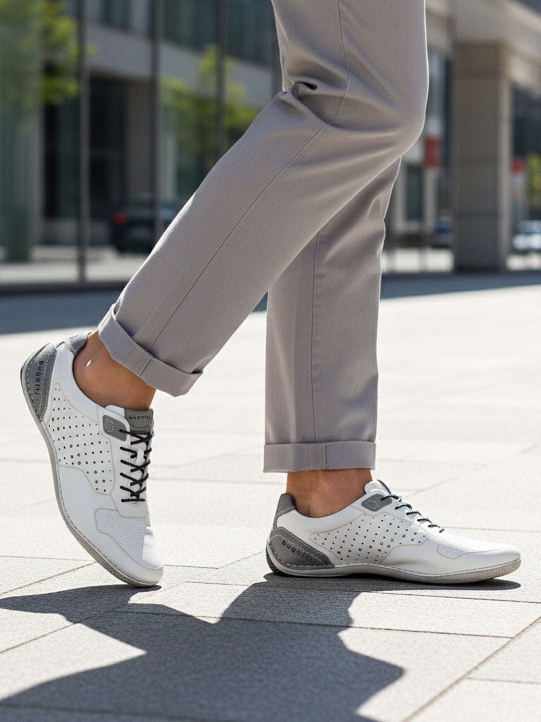 Expertly crafted for on-the-move practicality and everyday style. bugatti Canario white sneakers. Features Soft Fit and Soft Flex functionalities for unparalleled comfort and walking experience.