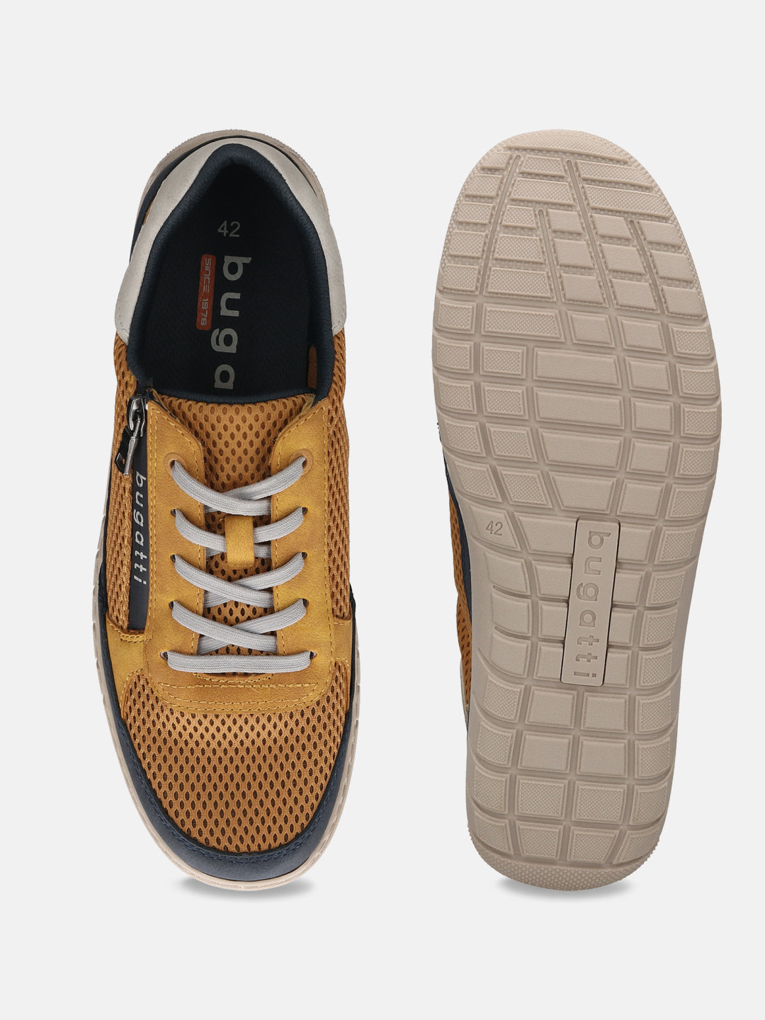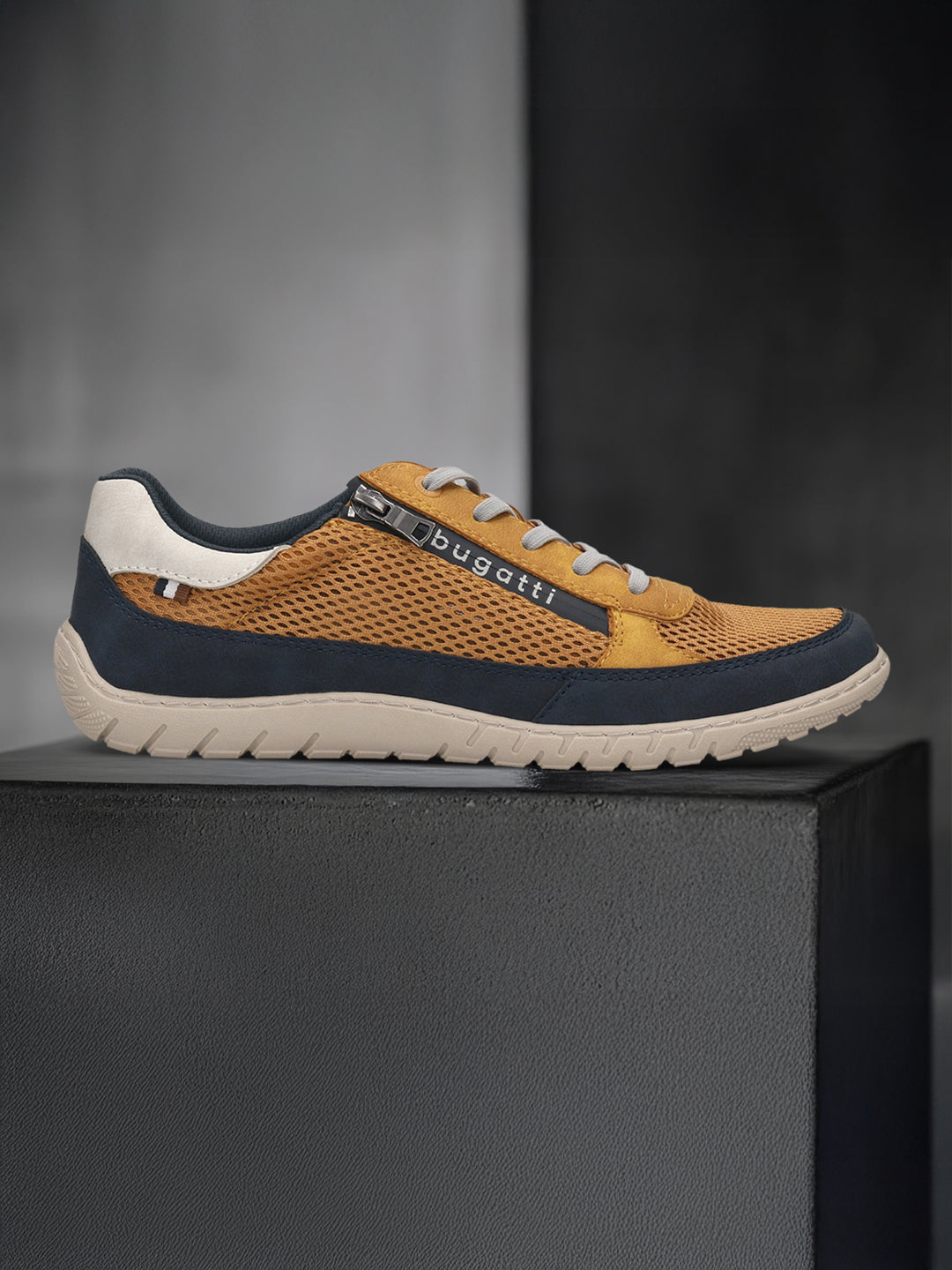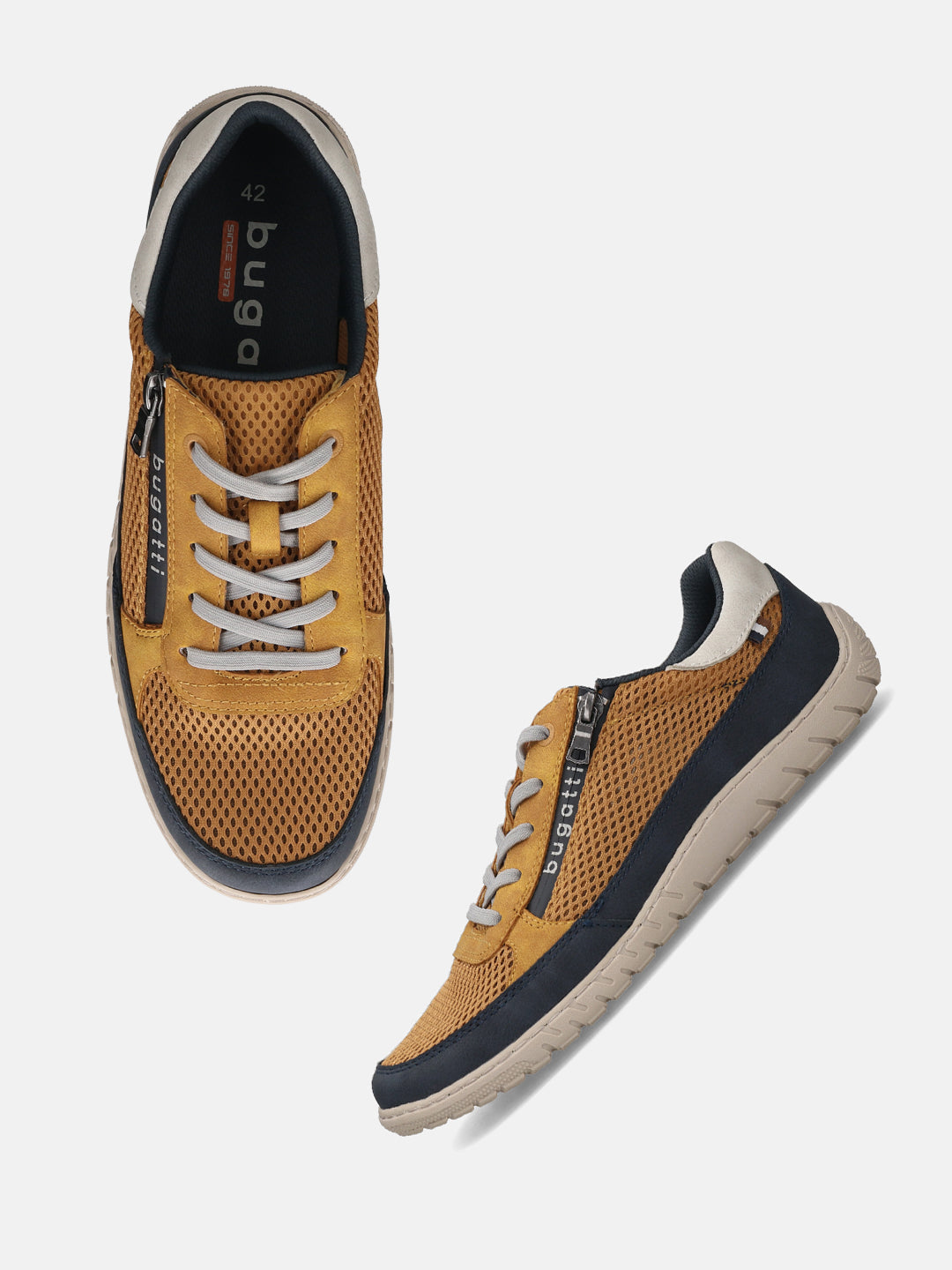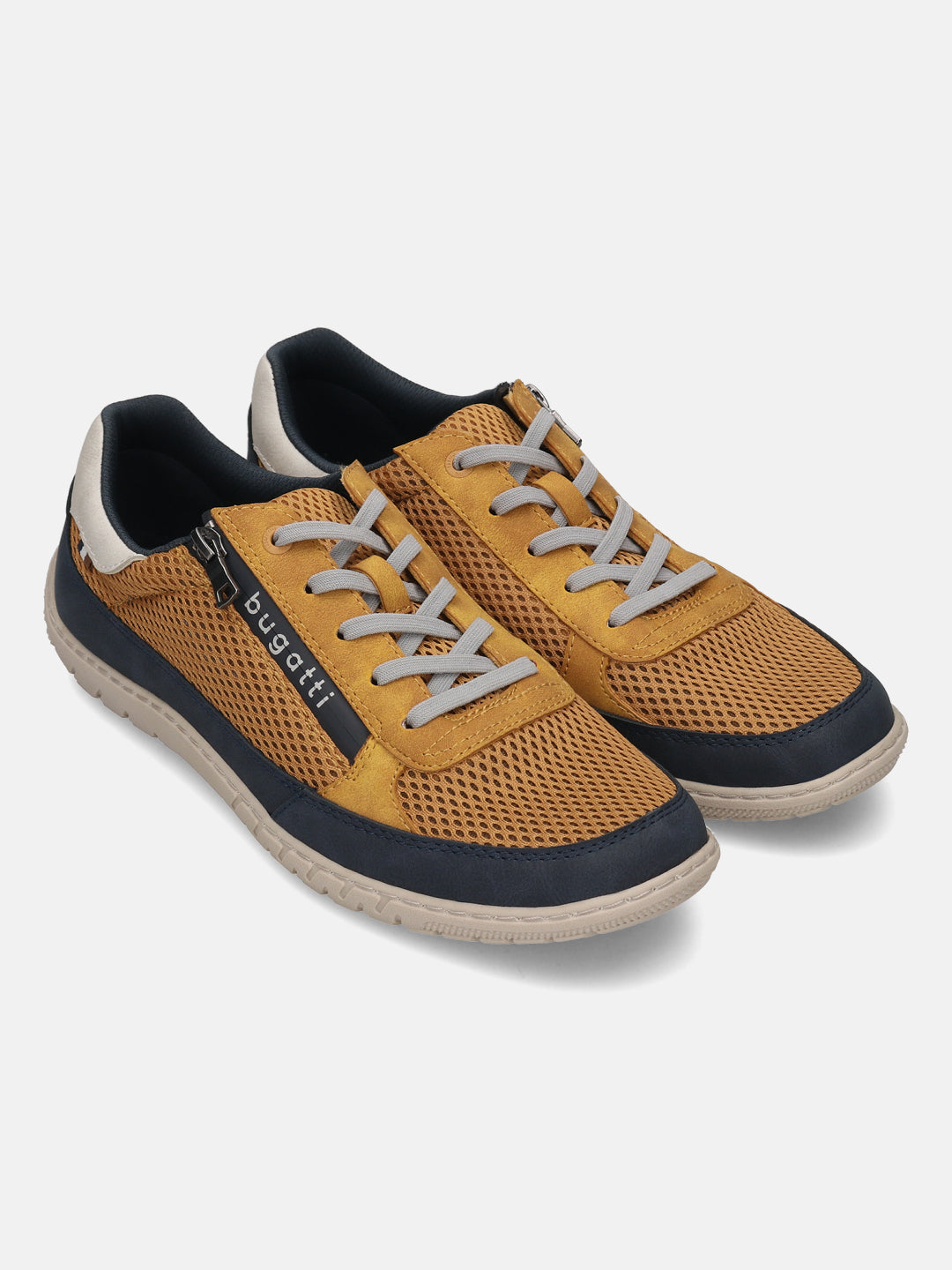 A perfect mix of style and sophistication. bugatti Bermudas yellow & dark blue sneakers. Featuring synthetic uppers, a fashionable mesh design on the sides and stylish zip details for effortless wear.