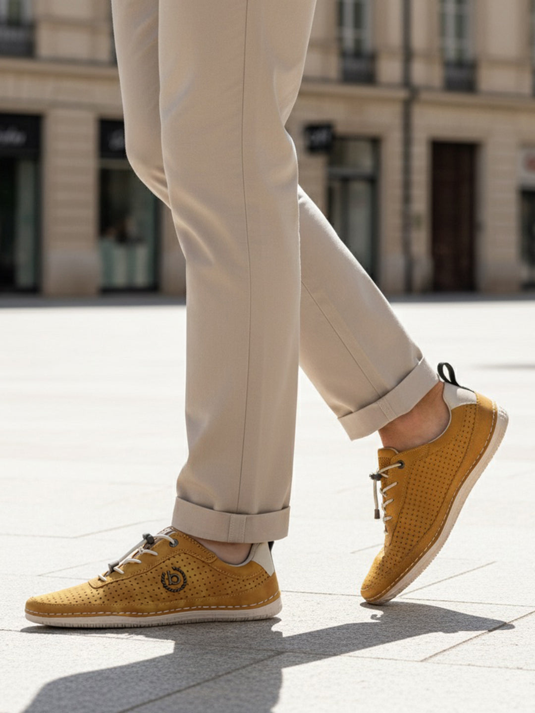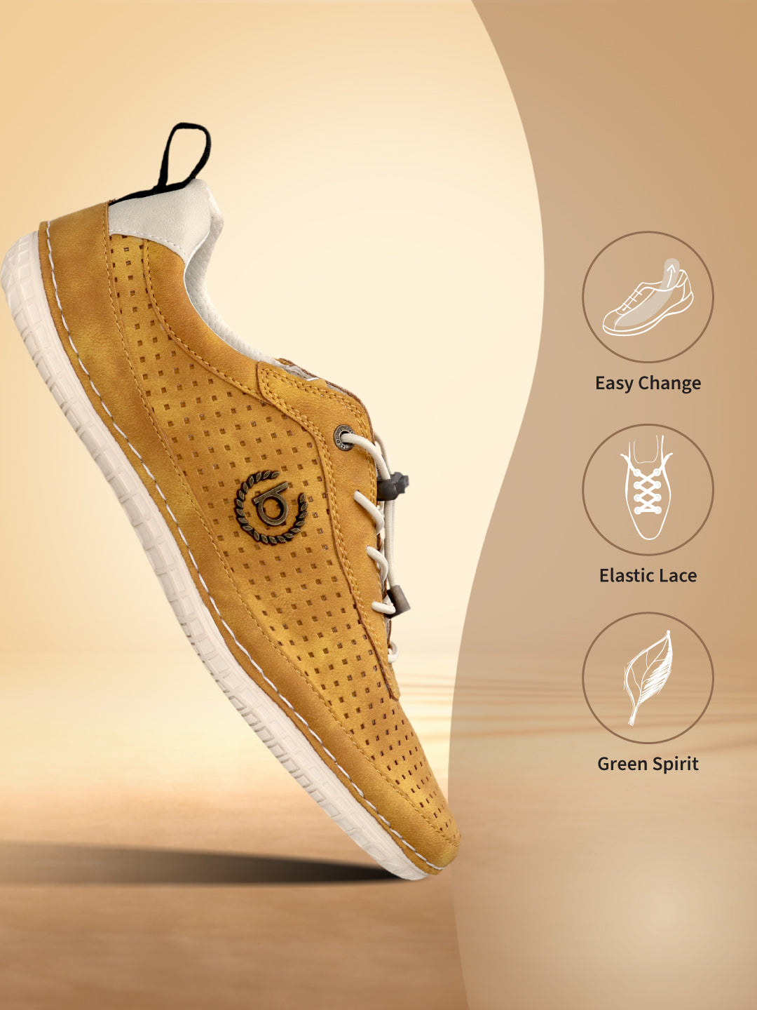 A definitive step forward into the future. bugatti Bimini yellow sneakers. Crafted from vegan materials. Soft Fit for comfort and Elastic Lace that makes sliding in & out effortless.