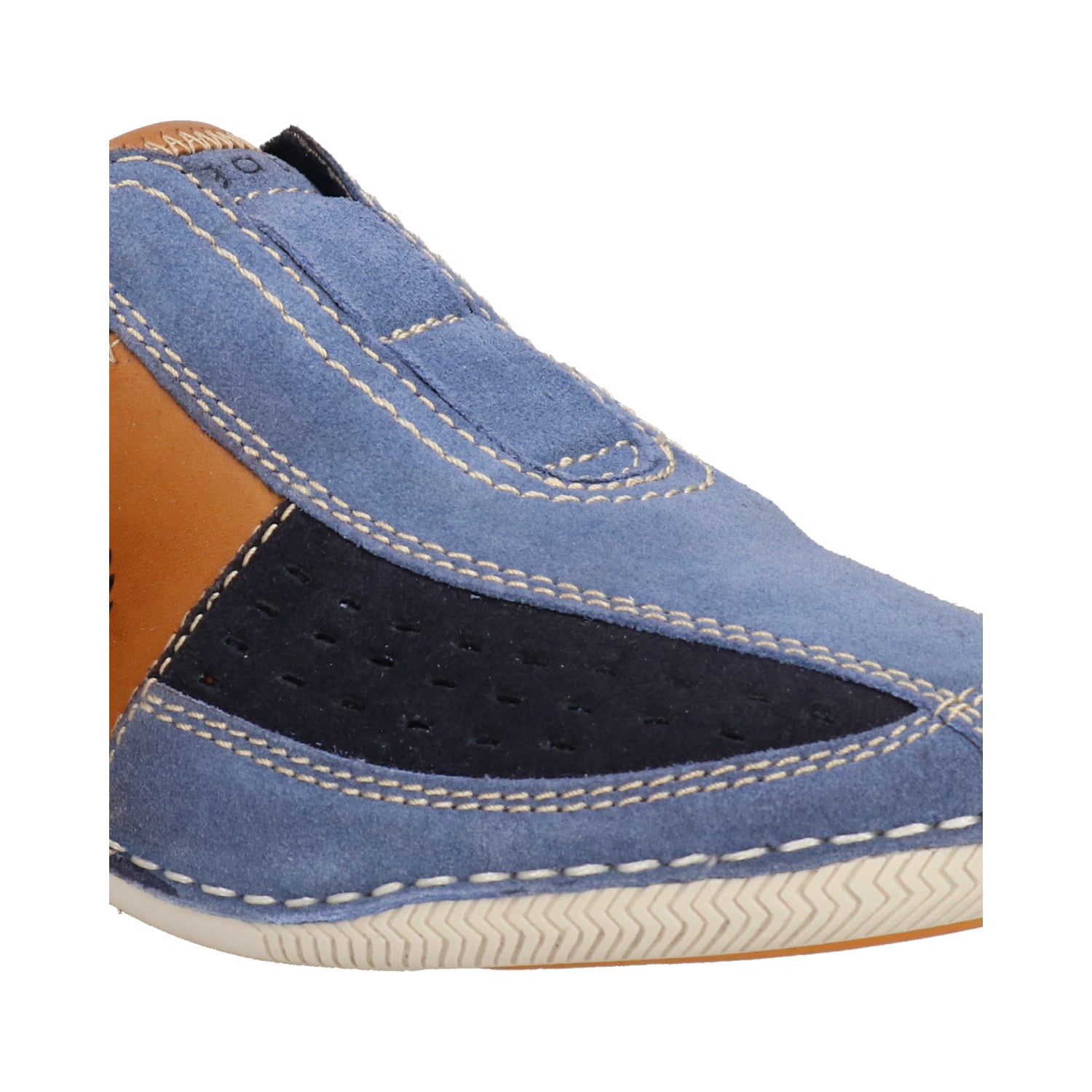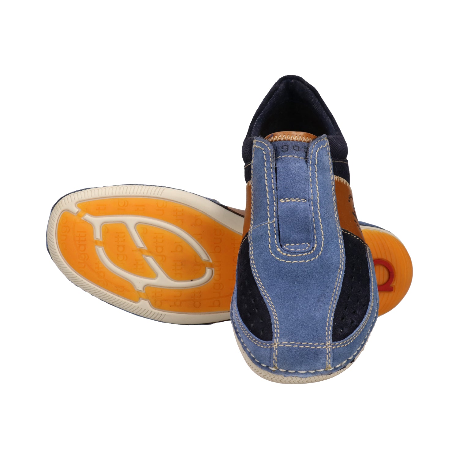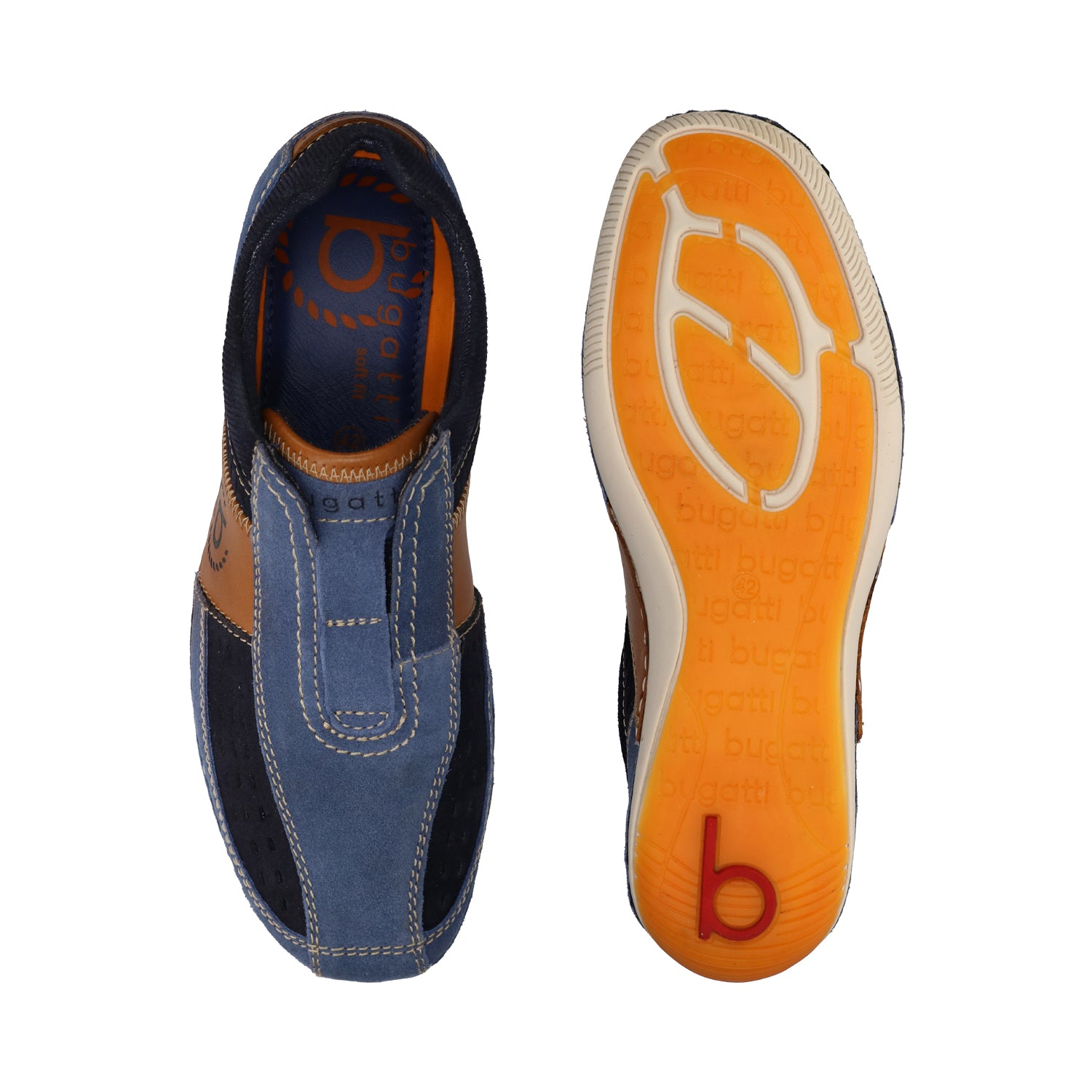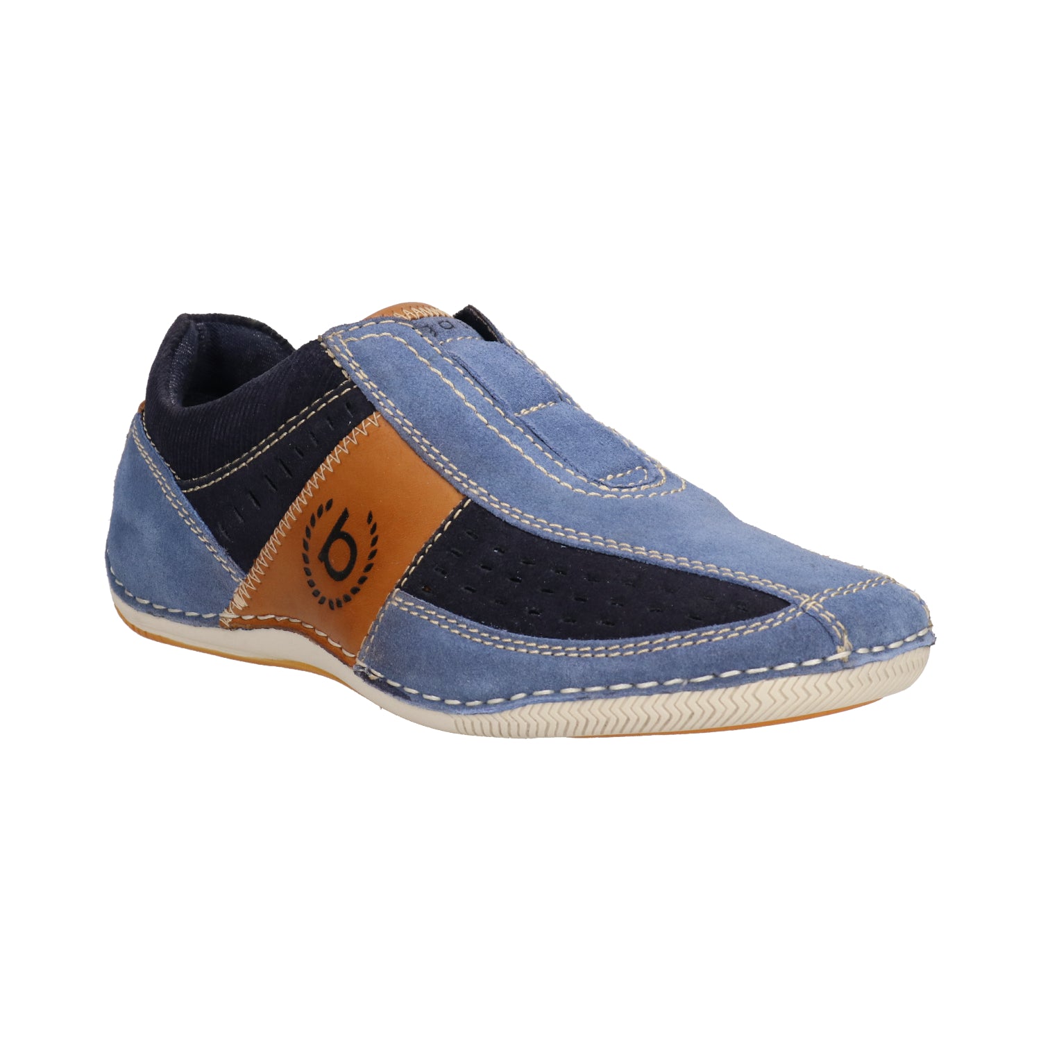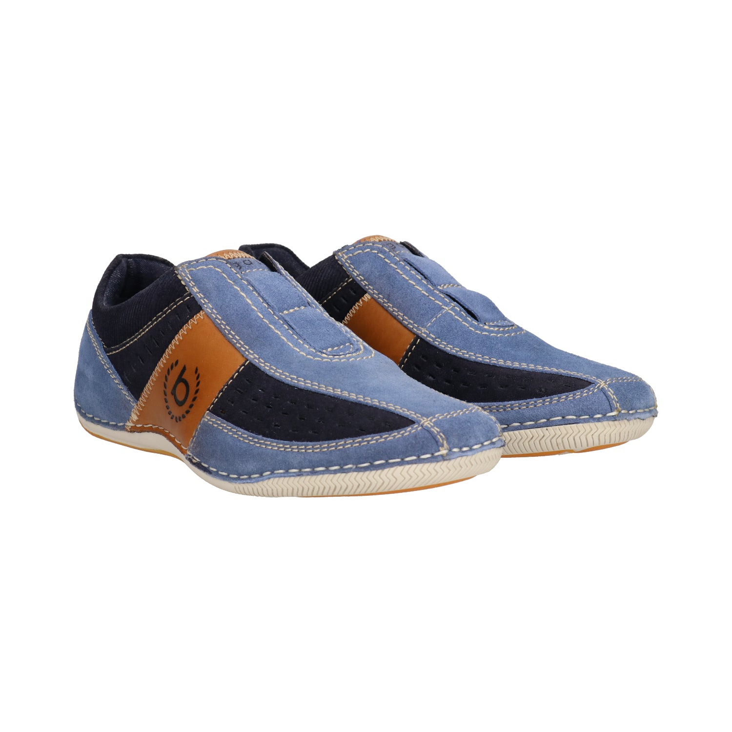 A must-have sporty indulgence. bugatti light blue and dark blue suede leather slip-on sneakers. With a charming Used Look finish and Soft Fit memory foam footbeds for absolute walking comfort.