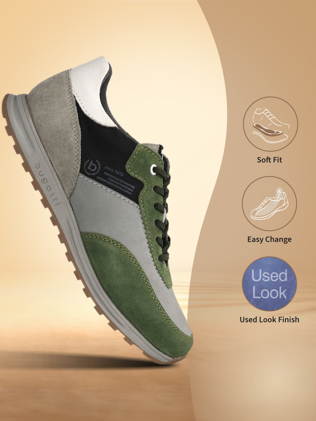 bugatti Cirino Green Premium Leather Comfort Mid Top Sneakers