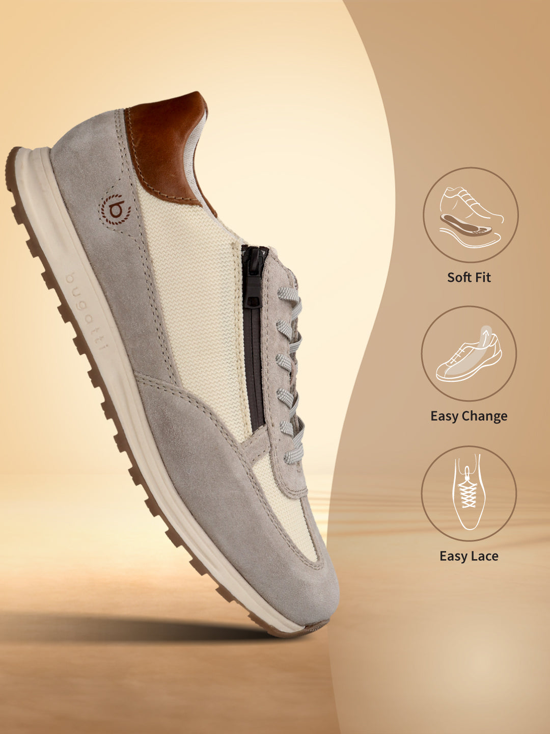 Artfully designed and built to last. bugatti Cirino sand and beige sneakers. Featuring Easy Lace and Easy Change for added convenience. Soft Fit makes sure that these shoes are a delight to wear.