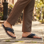 For the man who appreciates quality in leisure too. bugatti Cobie dark blue leather thong sandals. Fashionable, with a Used Look finish. Practical, with Soft Fit insoles. A breeze to walk in.