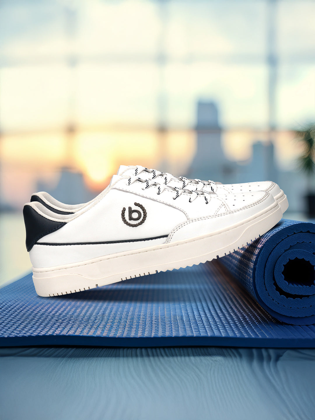 The classic white sneaker gets a twist in these bugatti Humus white and dark blue sneakers. Its leather uppers sit atop TPR soles and feature fashionable blue accents along the sides and heel counter.
