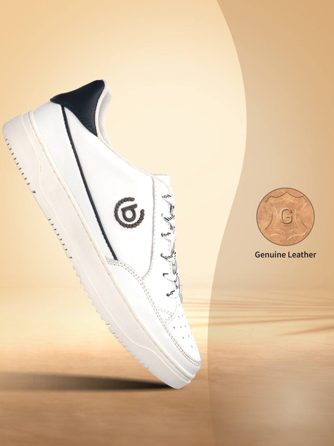 - Product Name : Humus White & Dark Blue Premium Leather Sneakers