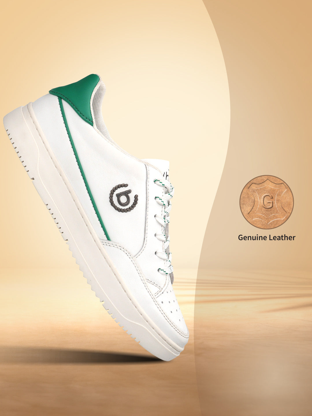 - Product Name : Humus White & Green Premium Leather Sneakers