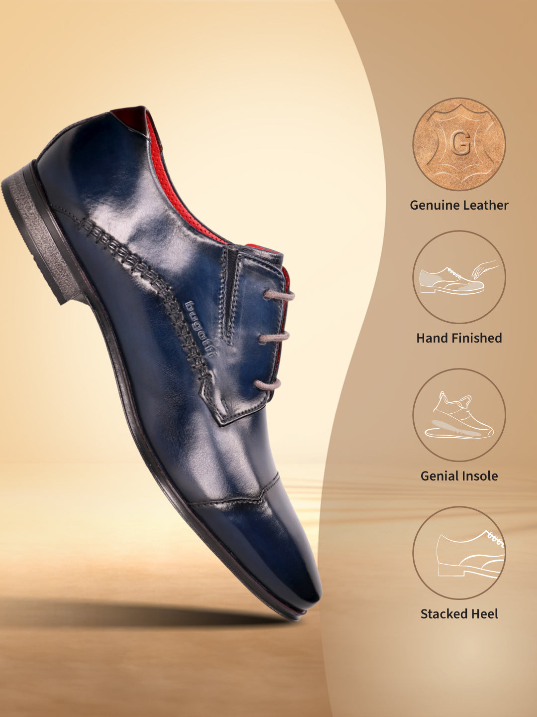 bugatti Margo Blue Premium Leather Comfort Derby Formal shoes