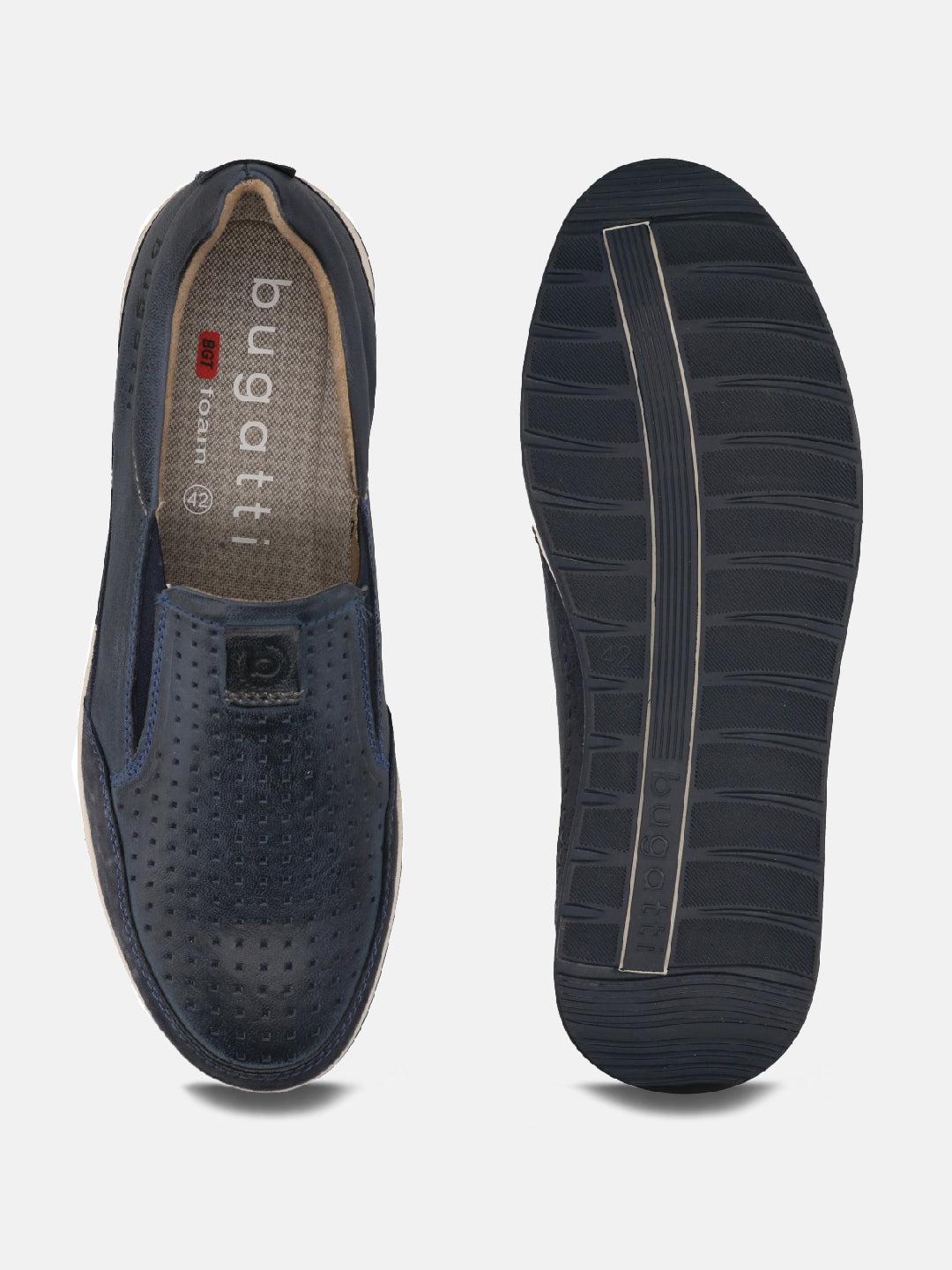 Elevate your cool vibe with the fashionable bugatti blue sneakers. The perforated pattern of the uppers crafted in nubuck creates a trendy casual look. Spend the entire day in the comfort of these sneakers with TPR outsoles that offer superior support and excellent grip. These sleek and casual pairs compliment the modish and attractive look of tees, jackets, denim and shorts. It's the latest from the streets of Europe.